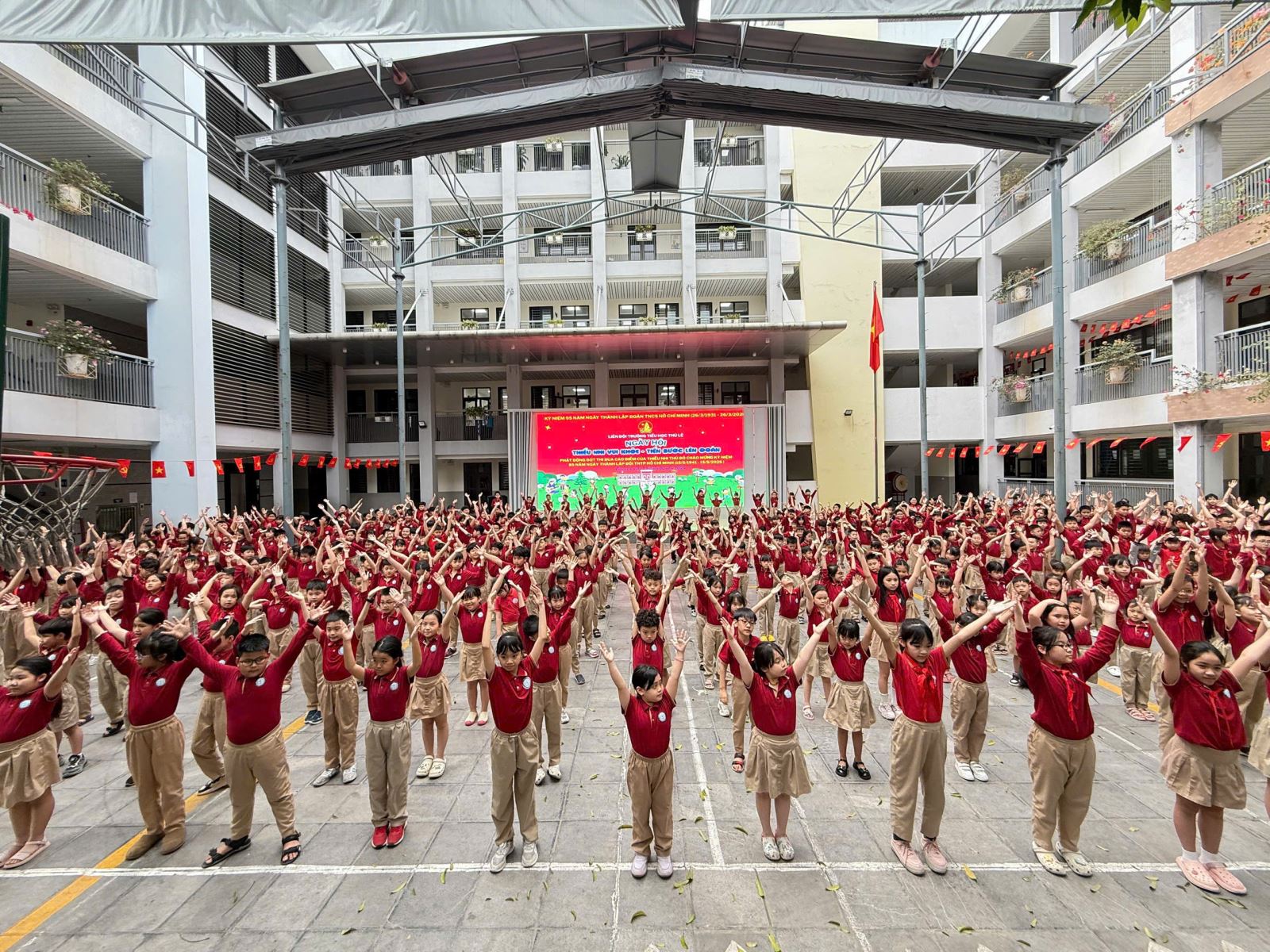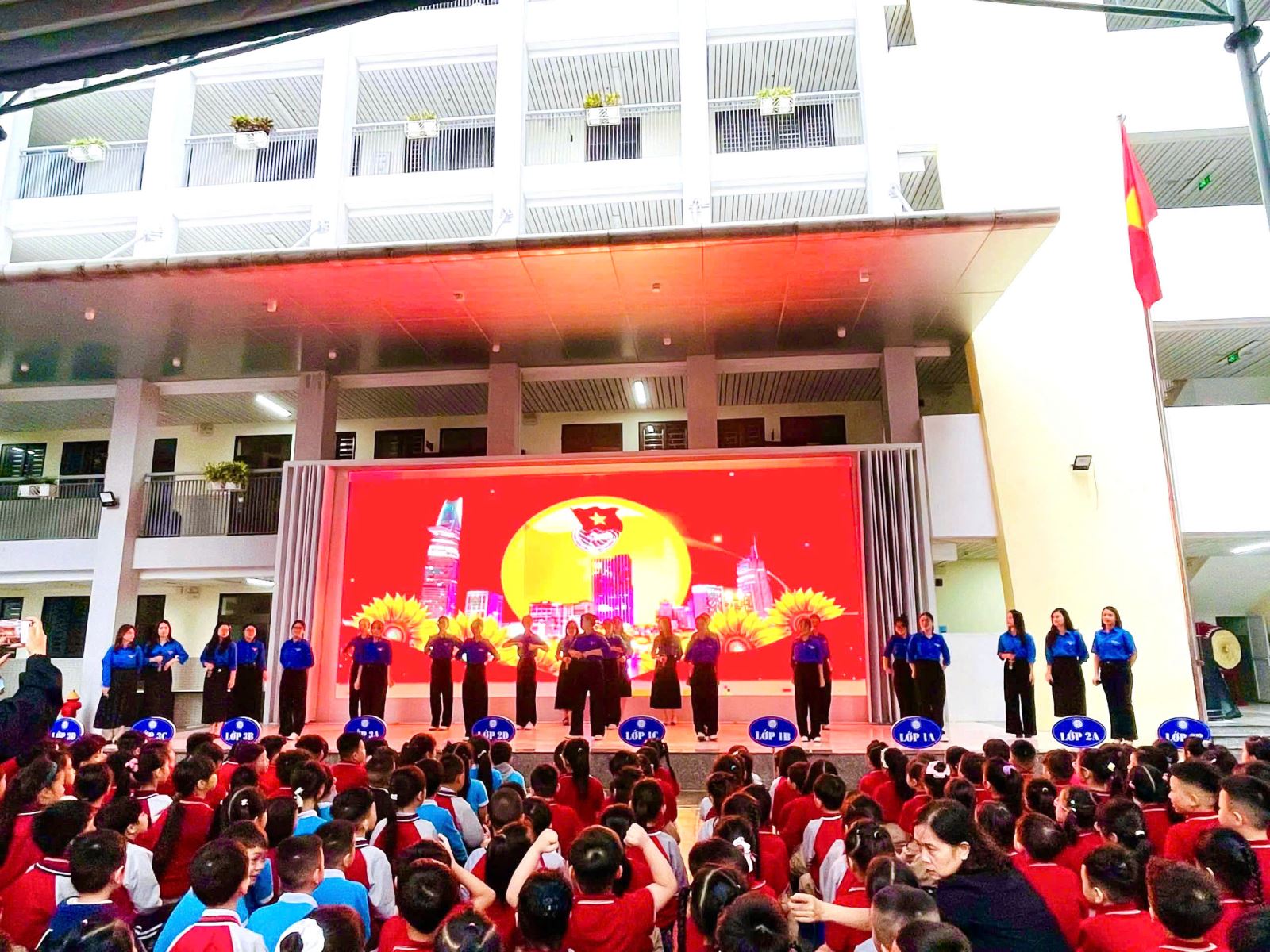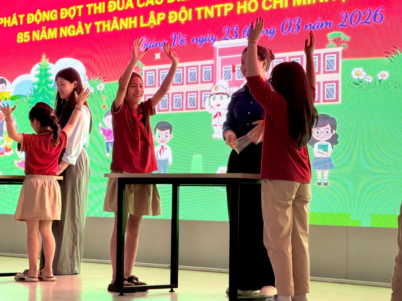 Cũng năm trong chuỗi các hoạt động hưởng ứng ngày hội, Liên đội đã tổ chức màn đồng diễn sân trường với bài hát “Hát vang trong kỷ nguyên mới”. Hoạt động đã tạo nên không khí sôi nổi, hào hứng, góp phần lan tỏa tinh thần đoàn kết, khỏe khoắn và niềm tự hào của các em đội viên, nhi đồng.