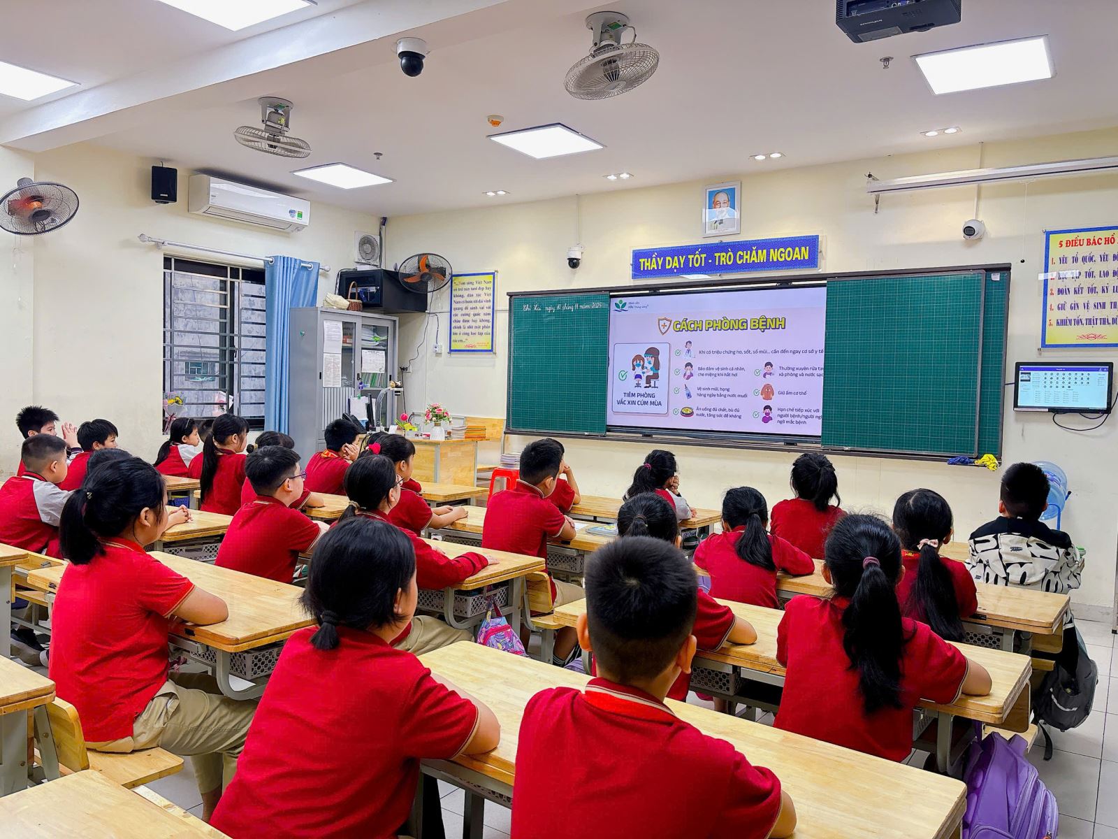 Trong buổi sinh hoạt, các em học sinh được theo dõi video tuyên truyền sinh động, dễ hiểu do Liên đội chuẩn bị. Video cung cấp nhiều kiến thức bổ ích về nguyên nhân, triệu chứng và biện pháp phòng tránh bệnh cúm A, cụ thể như: