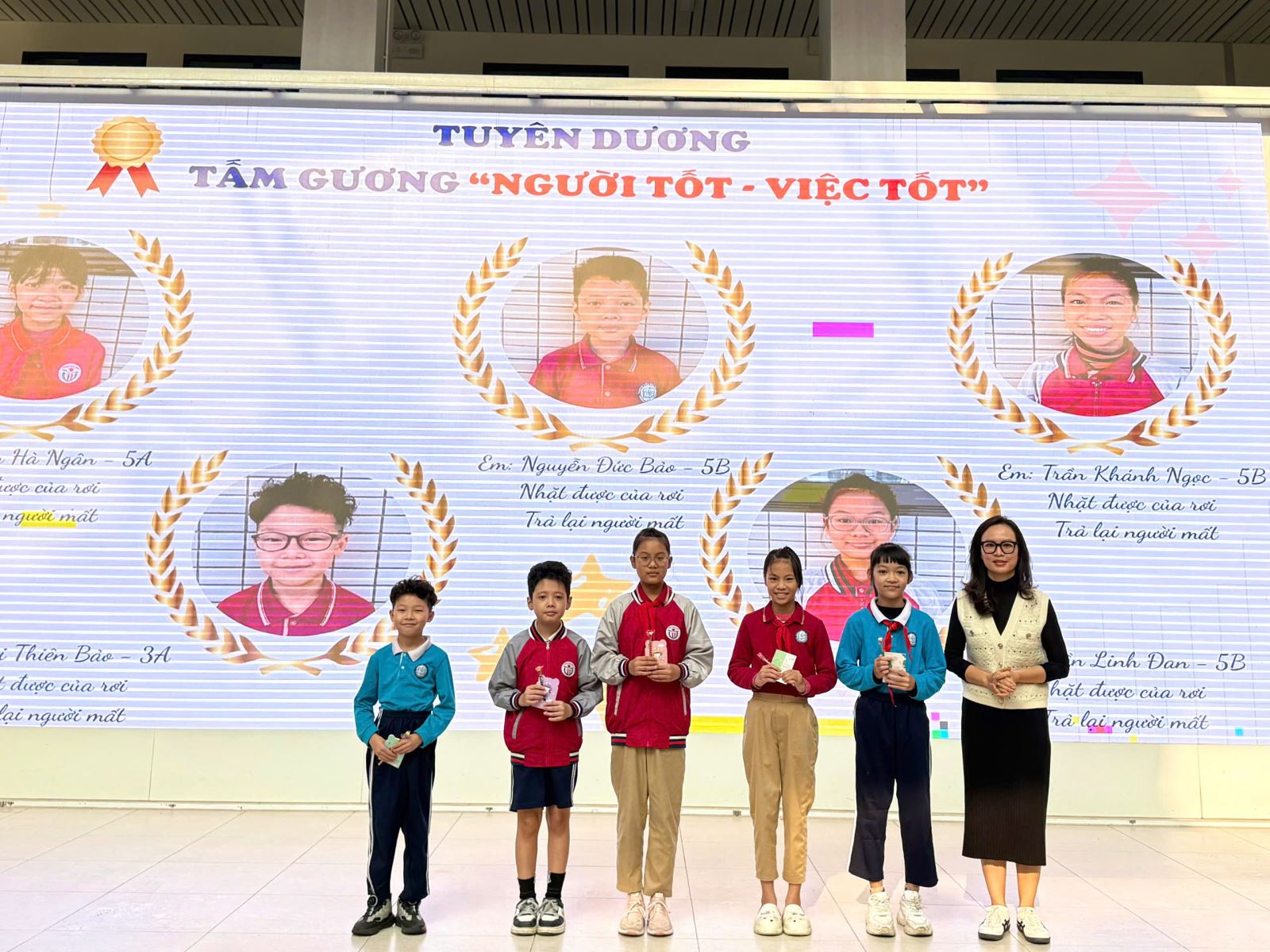 Cũng trong buổi sinh hoạt, Liên đội đã tổ chức tuyên dương những tấm gương “Người tốt – Việc tốt”, biểu dương các em học sinh có nhiều hành động đẹp, việc làm ý nghĩa, biết quan tâm, giúp đỡ bạn bè, đồng thời có tinh thần trách nhiệm và ý thức kỷ luật tốt trong học tập và sinh hoạt. Đây là hoạt động có ý nghĩa thiết thực nhằm lan tỏa những giá trị tốt đẹp, khuyến khích học sinh noi gương và phấn đấu rèn luyện.