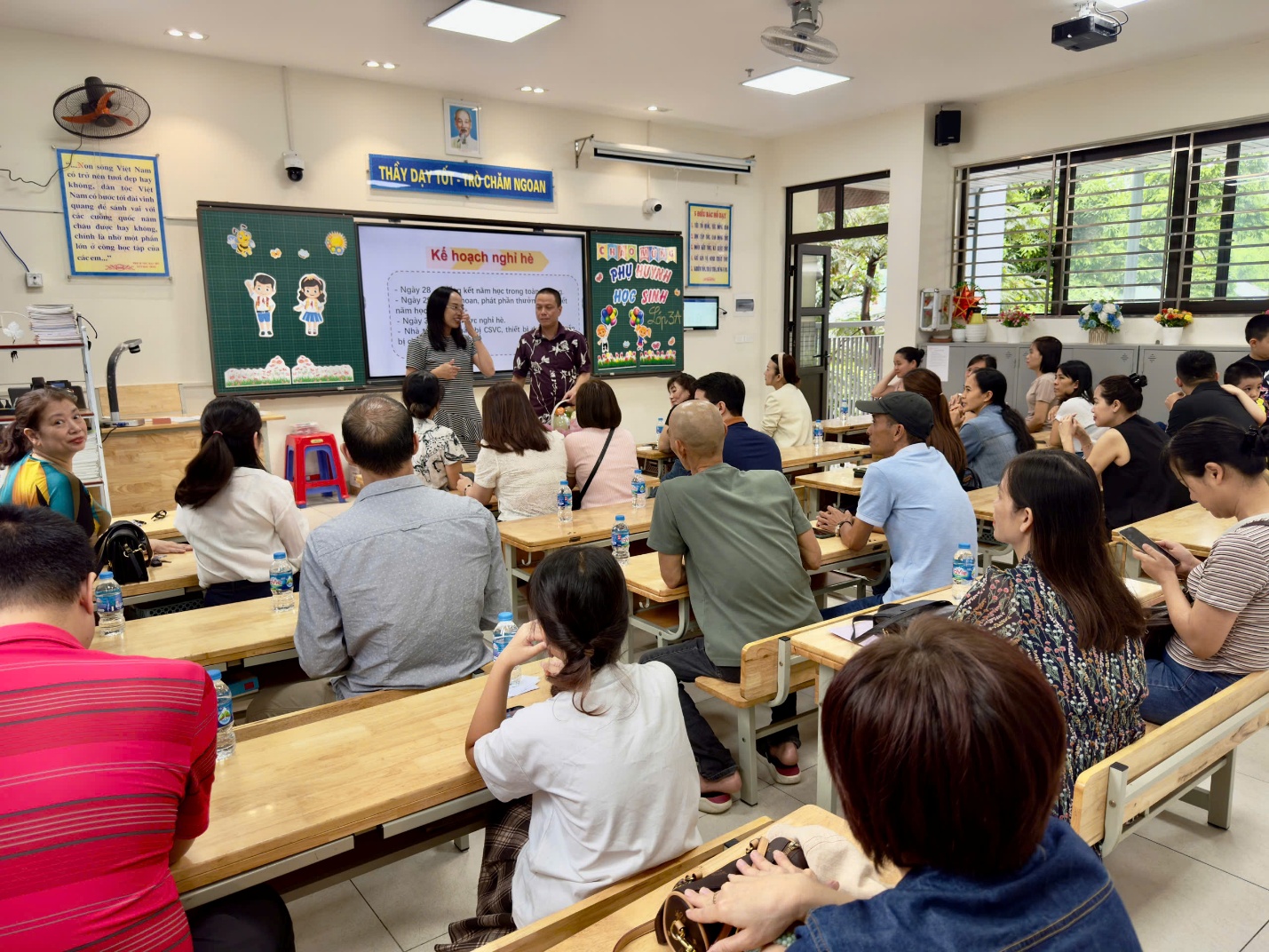 Cũng trong buổi họp, giáo viên chủ nhiệm các lớp đã thông báo tới các bậc phụ huynh về tình hình học tập, rèn luyện và thi đua của học sinh trong học kì II; về việc tham gia các hoạt động giáo dục khác của lớp. Ngoài ra, các bậc phụ huynh cũng được phổ biến về Kế hoạch hoạt động hè 2025 của nhà trường. Theo đó, HS tham gia sinh hoạt hè tại địa phương, đến trường tập trung khi có thông báo chính thức.