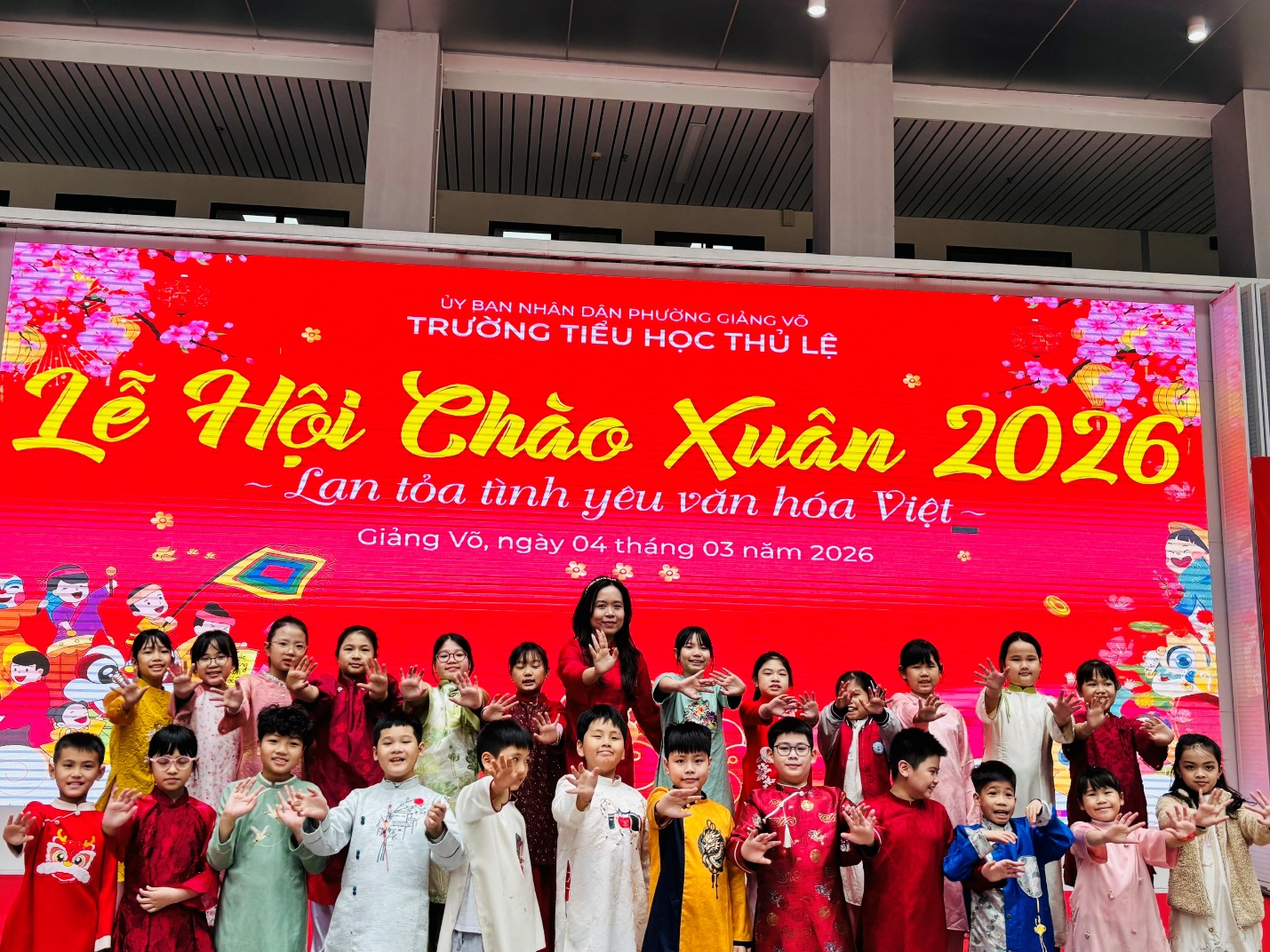 Sáng nay, sân trường Trường Tiểu học Thủ Lệ như khoác lên mình một chiếc áo mới rực rỡ sắc xuân. Trong không khí rộn ràng của Lễ hội Chào Xuân 2026 – “Lan tỏa tình yêu văn hóa Việt”, các bạn học sinh lớp 4C đã có một ngày thật đặc biệt: vui tươi, náo nức và đầy ắp tiếng cười.