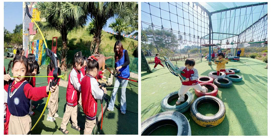 Buổi chiều, không khí tại khu vui chơi của Làng Mô thật náo nhiệt. Các con được tham gia nhiều hoạt động thể chất hấp dẫn như trượt cỏ, đua xe điện, zipline, và Sasuke Việt Nam thu nhỏ. Những tiếng cười, tiếng cổ vũ vang lên không ngớt – minh chứng cho tinh thần đồng đội, lòng dũng cảm và niềm vui chiến thắng bản thân.