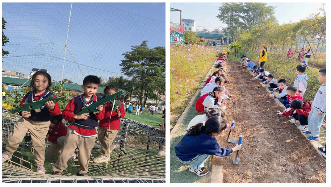 Không chỉ được tiếp cận công nghệ hiện đại, các con còn được trở về với nét đẹp của làng nghề Sơn Đồng, làm đồ thủ công, tô tượng, nặn đất sét, và tham gia lớp “Sắc màu cuộc sống”. Những hoạt động này rèn cho học sinh tính kiên trì, khéo léo và biết trân trọng giá trị lao động. Song song đó, các lớp kỹ năng sống như thoát hiểm – thoát nạn, phòng chống đuối nước được lồng ghép sinh động, giúp học sinh biết tự bảo vệ bản thân trong các tình huống thực tế.