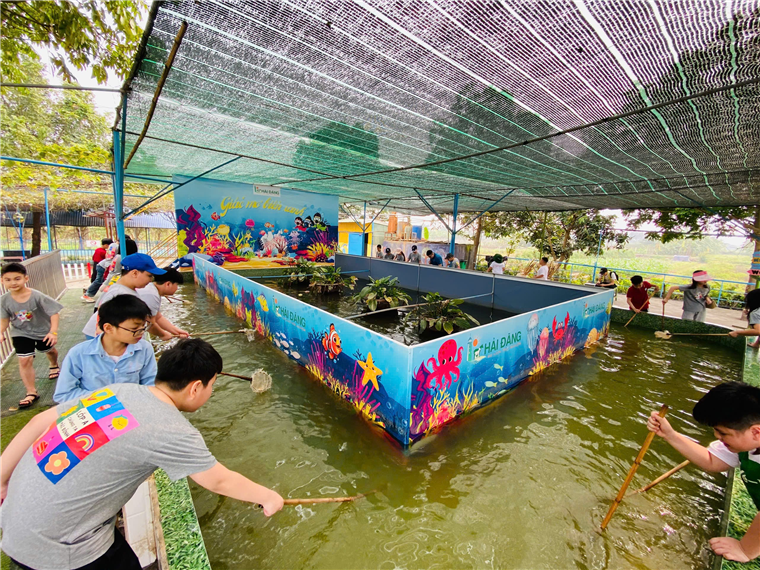 Trang trại Hải Đăng có cảnh sắc với những ngôi nhà xinh đẹp giữa vườn hoa; có những khu vui chơi, trải nghiệm và ăn nghỉ với nhiều hoạt động hấp dẫn, bổ ích đã vui mừng đón tiếp học sinh khối 5 giữa tiết trời xuân đầy nắng và gió. Đến nơi đây các bạn nhỏ được gắn kết với thiên nhiên trong lành và có những trải nghiệm thực tế mà ở thành phố không có được. Các em học sinh khối 5 đã hòa mình vào những trải nghiệm đầy thú vị tại trang trại, tham gia các trò chơi vận động tập thể như kéo co; đu quay, trượt cỏ, vượt trướng ngại vật, đu dây; in tranh Đông Hồ; làm nhà khoa học với những thí nghiệm pha chế hóa học thú vị; tỉ mỉ nặn tò he, cho các con vật ăn,…