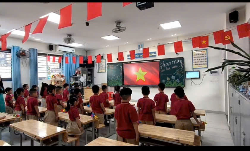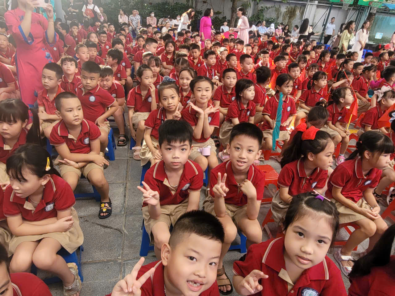 Dù còn nhỏ, nhưng các em đã thể hiện sự nghiêm túc và trang trọng trong nghi lễ chào cờ. Những ánh mắt lấp lánh niềm tin và khát vọng, hòa cùng tiếng hát Quốc ca vang lên thật hùng hồn, thể hiện lòng tự hào dân tộc và sự sẵn sàng đón nhận những điều mới mẻ. Đặc biệt, trong buổi lễ khai giảng, các bạn nhỏ lớp 2B đã có những khoảnh khắc đáng yêu và đầy ý nghĩa. Từ những bài phát biểu đầy cảm hứng của thầy cô, lời dặn dò về tinh thần học hỏi, đến những tiết mục văn nghệ sôi động, tất cả đều góp phần tạo nên một không khí vui tươi, phấn khởi. Các bạn đã cùng nhau ghi lại những bức ảnh kỷ niệm, lưu giữ khoảnh khắc đáng nhớ của ngày đầu tiên bước vào năm học mới. Những nụ cười rạng rỡ, những cái khoác vai thân thiết, tất cả đều là minh chứng cho một ngày khai trường tràn đầy niềm vui và sự hứng khởi.