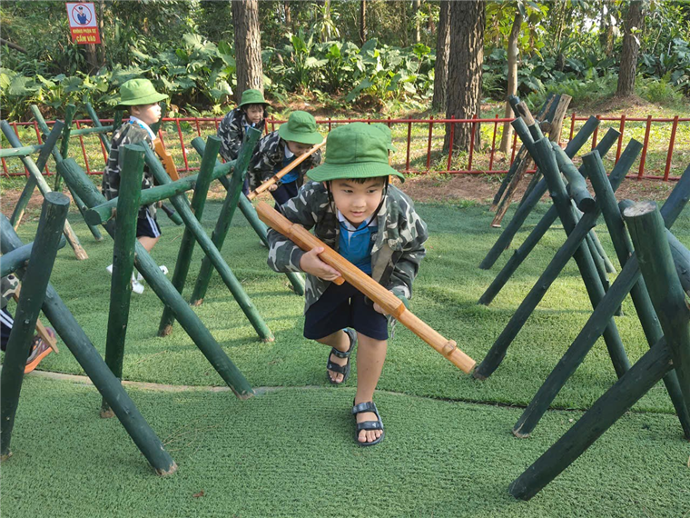 Tại khu vực đồi thông các con học sinh sẽ hóa thân thành các chàng trai cô gái du kích chiến đấu bảo vệ Tổ quốc.