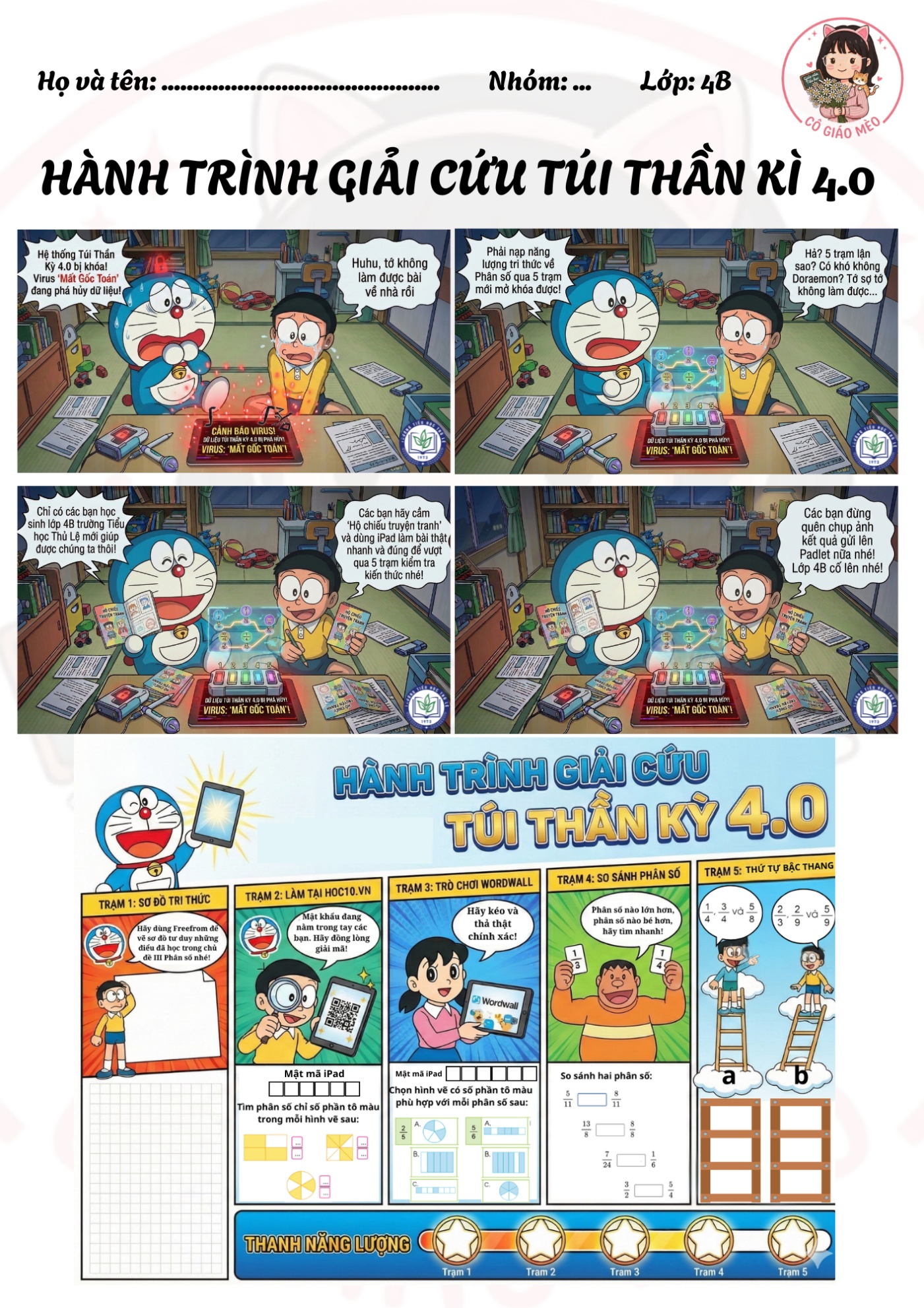 Mỗi học sinh nhận được một phiếu học tập dạng truyện tranh để làm xuyên suốt tiết học
