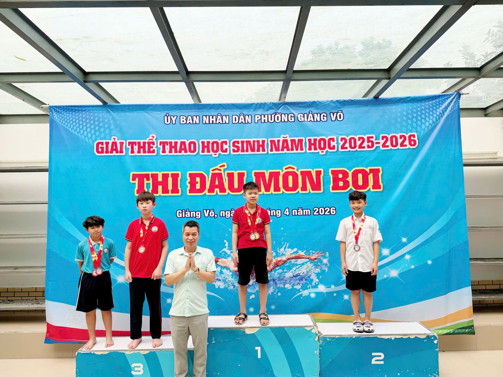 Đặc biệt, em Phạm Bảo Lâm - Lớp 5B đã thi đấu ấn tượng khi giành 02 Huy chương Đồng ở cả hai nội dung 50m tự do nam và 50m ếch nam, cho thấy sự bền bỉ và khả năng thích ứng tốt ở nhiều nội dung bơi khác nhau.