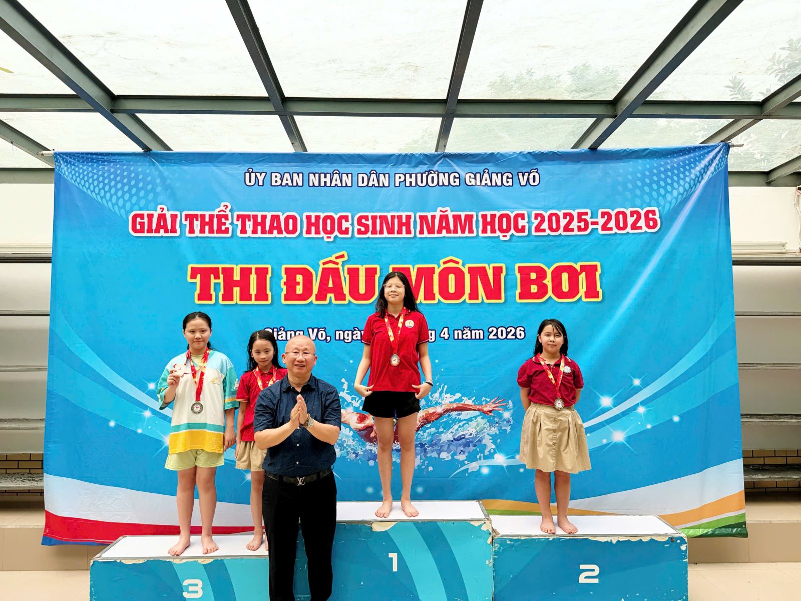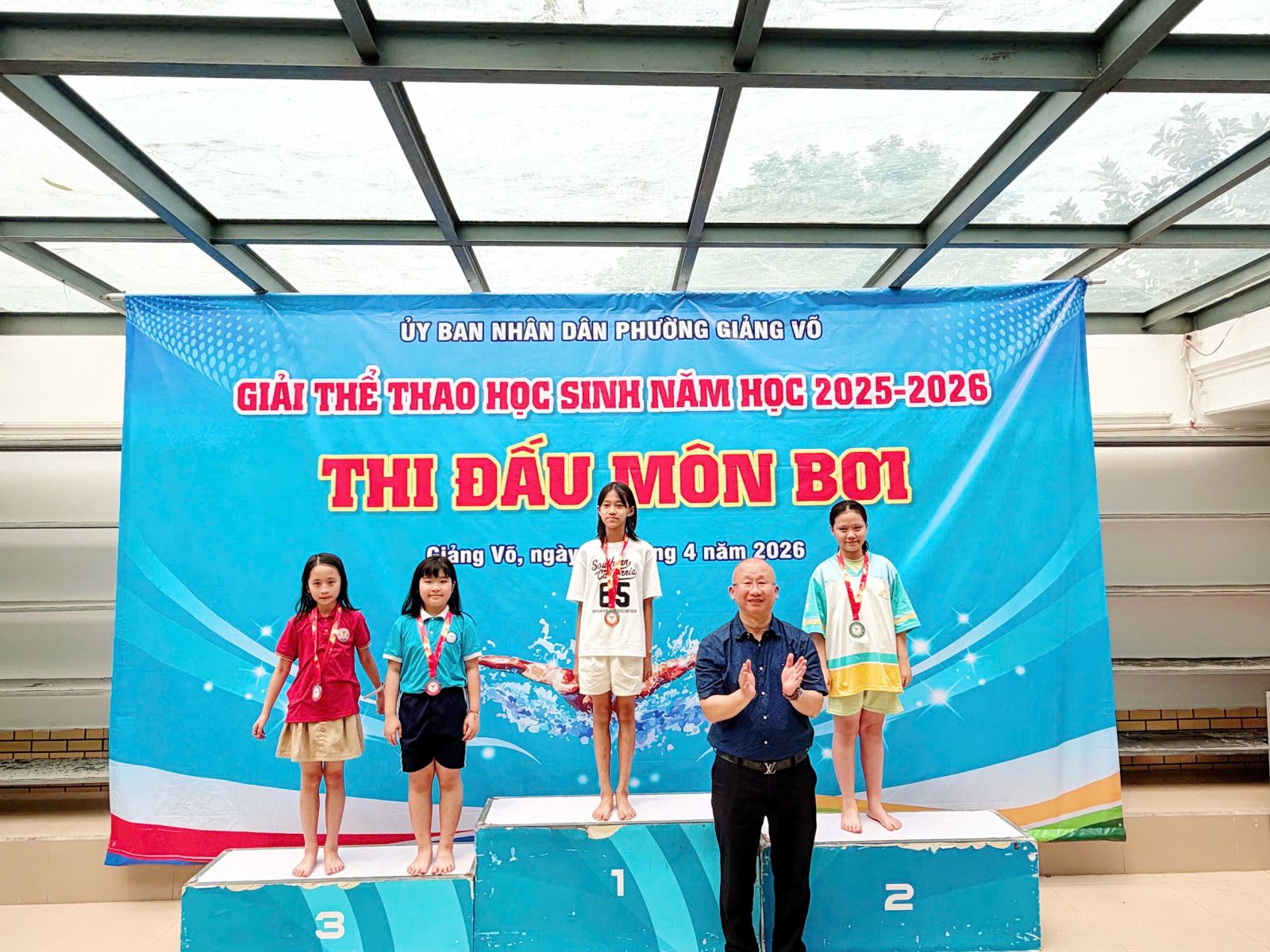 Ở nội dung 50m ếch nữ, em Phạm Nguyễn Linh Đan - Lớp 4B đã xuất sắc giành Huy chương Bạc, thể hiện kỹ thuật bơi chắc chắn và phong độ ổn định. Trong nội dung 50m tự do nữ, em Nguyễn Hà Thy Anh - Lớp 5C đạt Huy chương Đồng, ghi dấu ấn với sự nhanh nhẹn và quyết tâm trong thi đấu.
