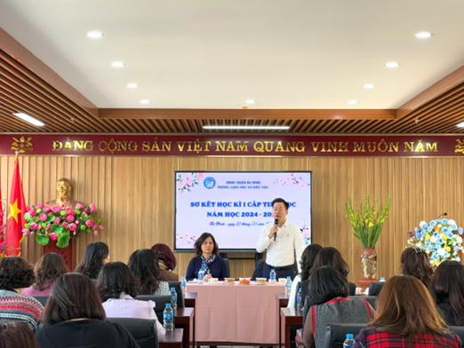 Phát biểu tại hội nghị, ông Lê Đức Thuận – Quận ủy viên, Trưởng phòng Giáo dục và Đào tạo – đã định hướng cho các nhiệm vụ trọng tâm của học kỳ II. Trong đó, nổi bật là việc xây dựng môi trường học tập lấy học sinh làm trung tâm, khuyến khích sự phát triển toàn diện về trí tuệ, thể chất và tinh thần.