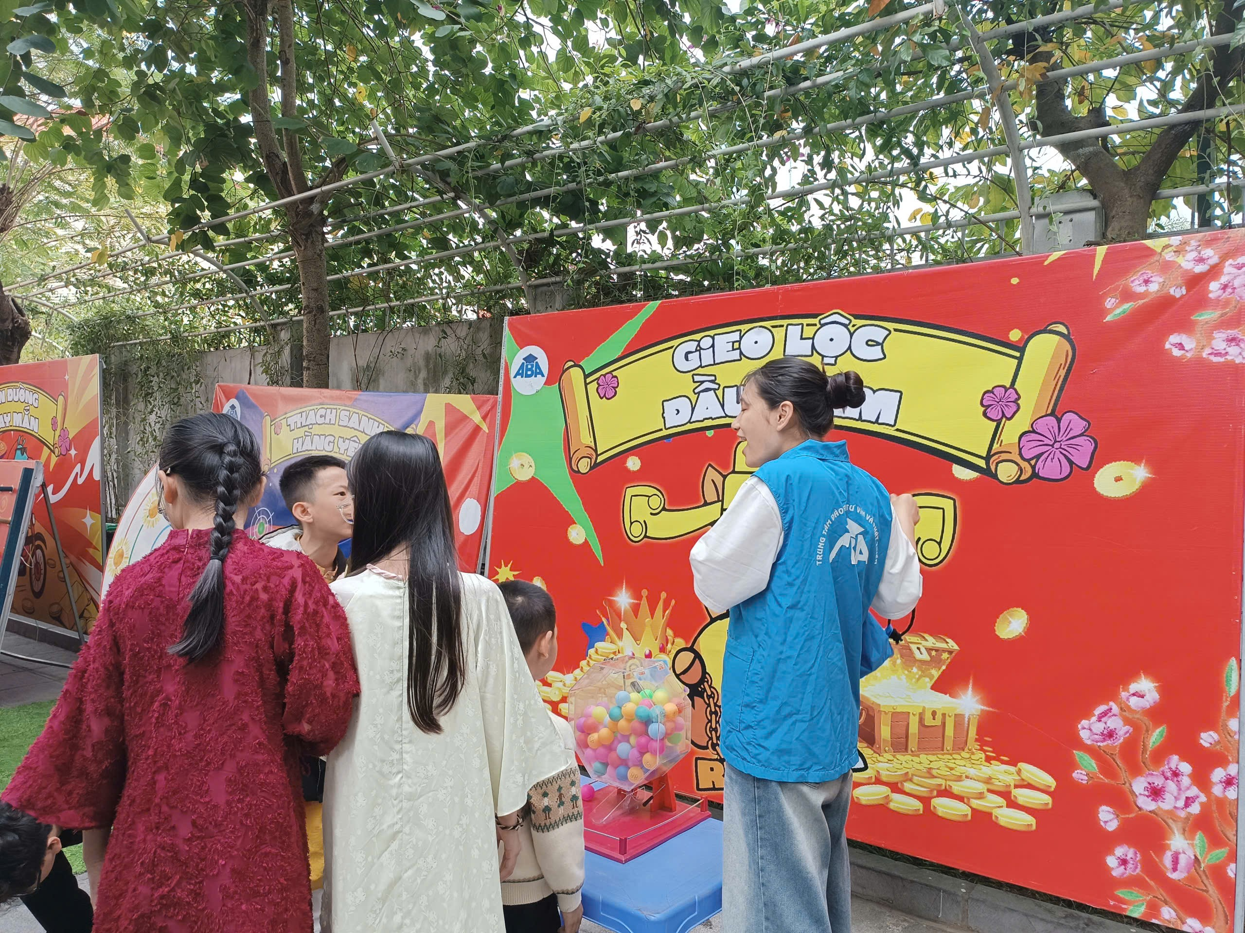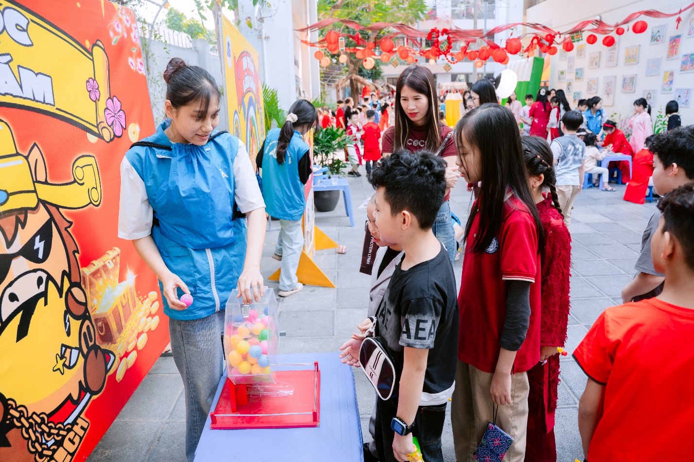 Không khí ngày hội càng trở nên rộn ràng hơn vào buổi chiều khi các bạn học sinh lớp 5B cùng nhau tham quan các gian hàng Hội chợ Xuân. Những gian hàng được trang trí rực rỡ với đủ sắc màu mùa xuân, bày bán nhiều món ăn hấp dẫn và những sản phẩm nhỏ xinh. Các bạn vừa thưởng thức những món ăn ngon, vừa hào hứng tham gia các trò chơi đầu xuân, mang về cho mình những phần quà nhỏ cùng niềm vui trọn vẹn.