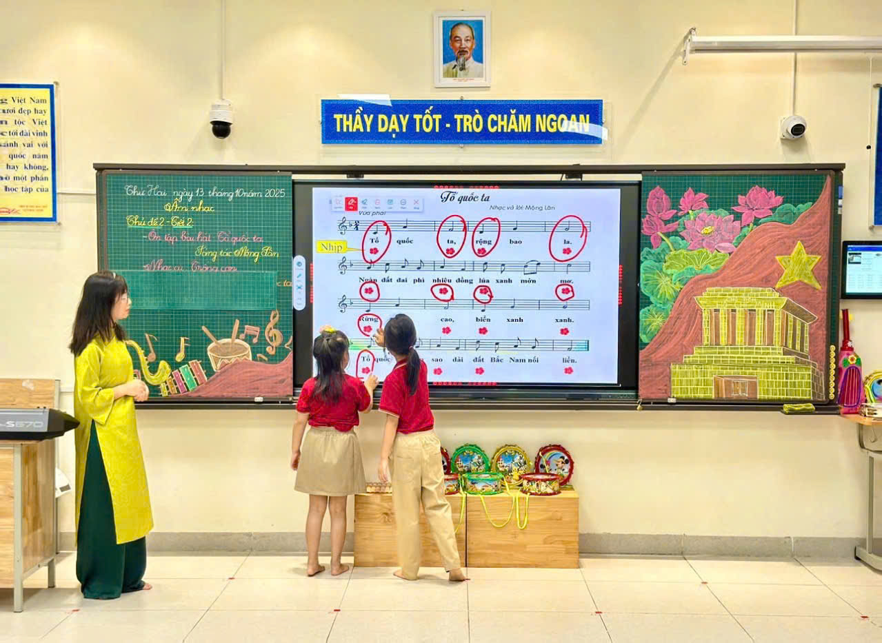 Tiết học đã diễn ra trong không khí thân thiện, sôi nổi, thể hiện rõ sự phối hợp hài hòa giữa giáo viên và học sinh. Qua đó, học sinh không chỉ được ôn tập kiến thức âm nhạc mà còn rèn luyện khả năng cảm thụ, phối hợp và tự tin thể hiện bản thân.