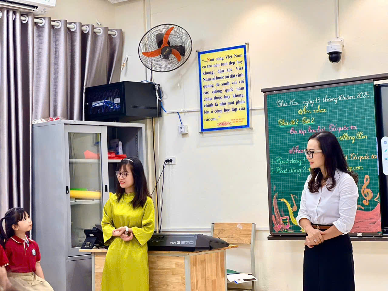 Sau tiết học, cô giáo Nguyễn Ngọc Anh – Phó Bí thư Chi bộ, Phó Hiệu trưởng nhà trường đã có những trao đổi, nhận xét tích cực về nội dung bài dạy, hình thức tổ chức lớp học cũng như tinh thần học tập hào hứng của học sinh. Đây là dịp để tổ Văn Thể Mỹ cùng nhau học hỏi, nâng cao chất lượng giảng dạy, đặc biệt trong các môn năng khiếu như Âm nhạc.