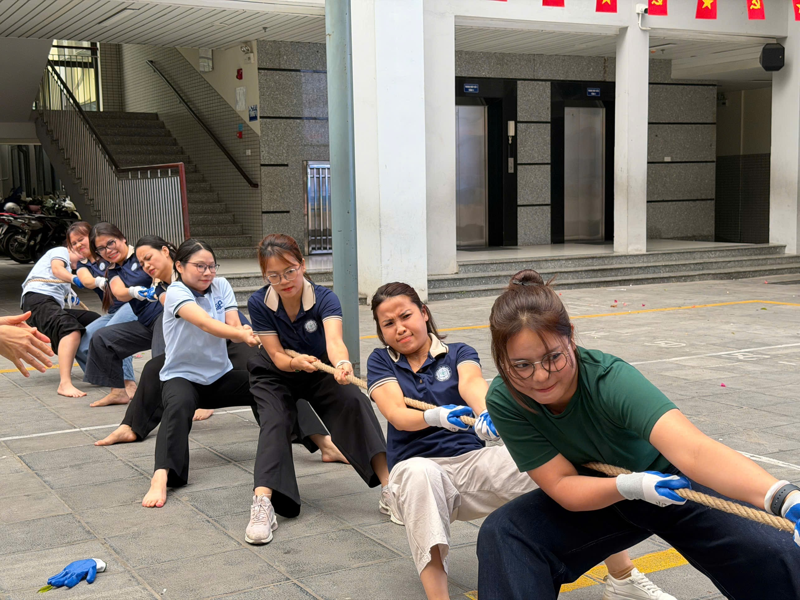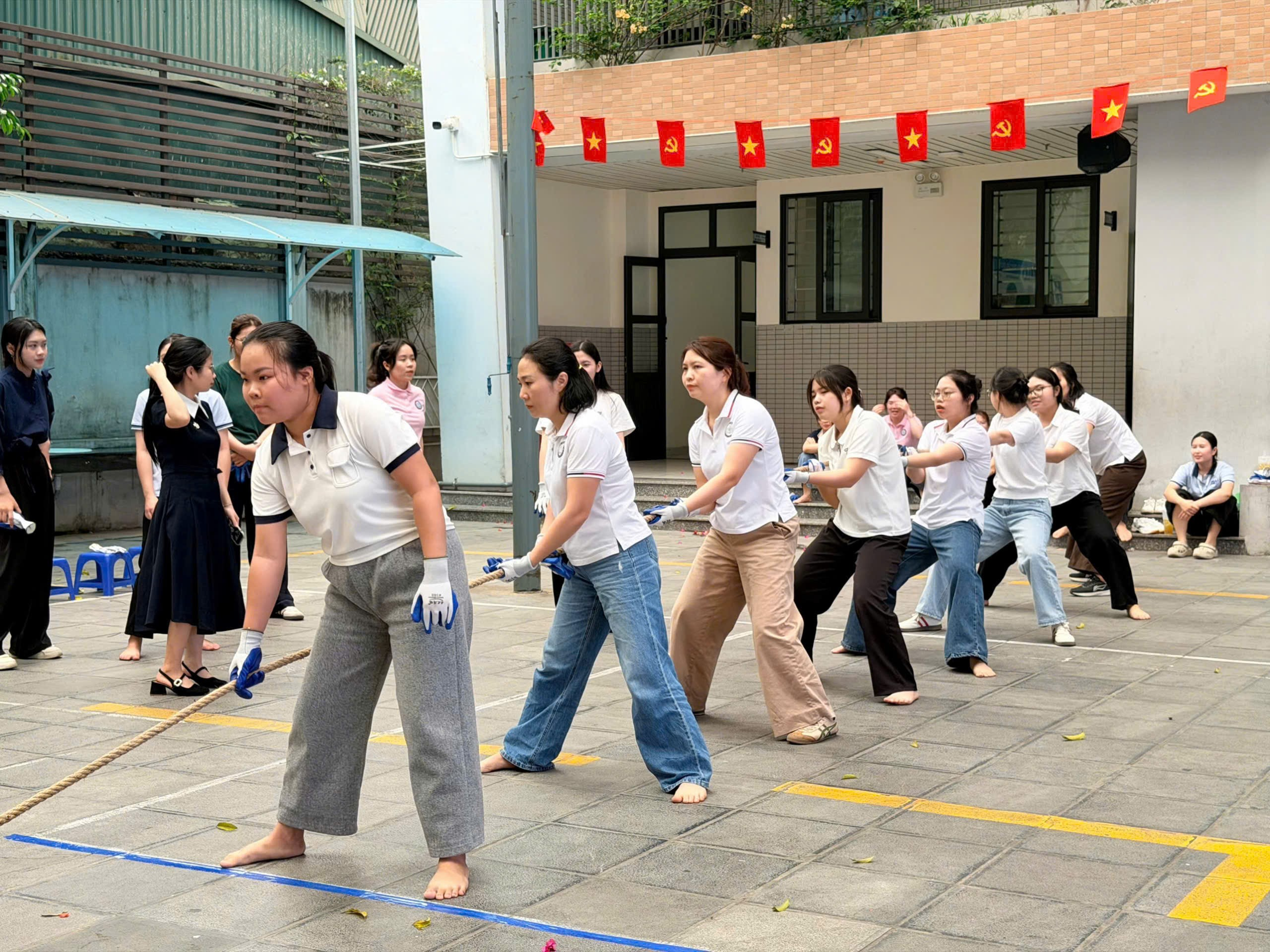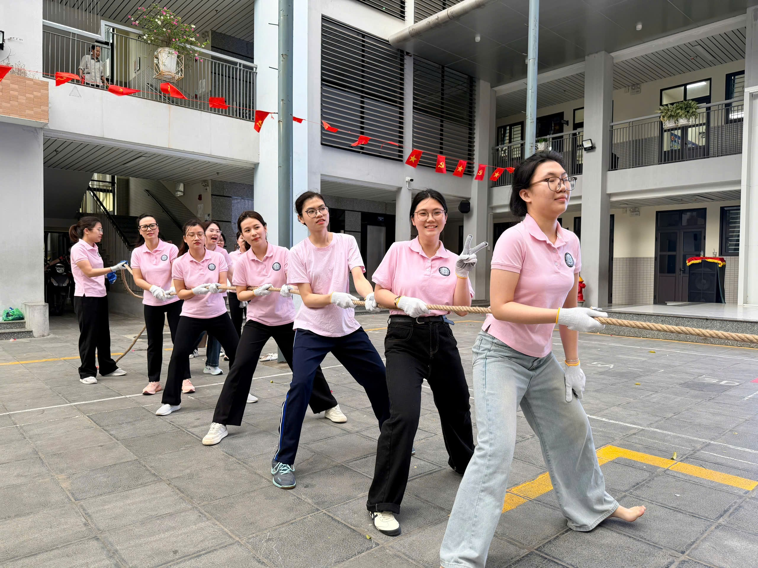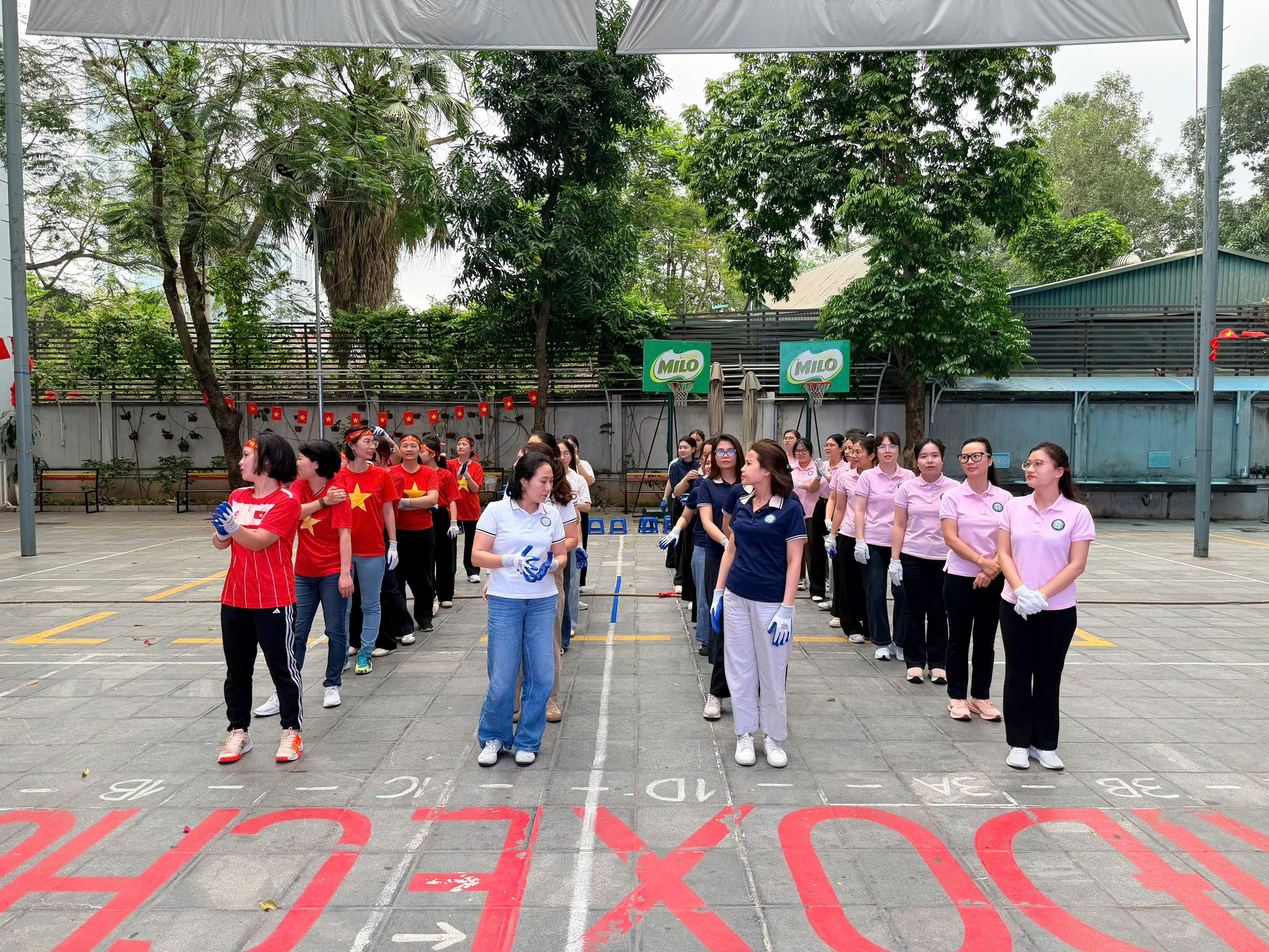 Giải đấu năm nay quy tụ các đội đến từ: Tổ Văn phòng, Tổ 1, Tổ 2, Tổ 3, Tổ 4 và Tổ 5. Ngay từ những phút đầu tiên, sân trường đã trở nên sôi động với tiếng cổ vũ nhiệt tình của các em học sinh. Các thầy cô giáo – những người vốn quen với phấn trắng, bảng đen nay trở thành những vận động viên thực thụ, cùng nhau sát cánh trên sân chơi thể thao. Dưới ánh nắng vàng rực rỡ, từng nhịp kéo căng dây thừng, từng bước chân dồn lực đã tạo nên hình ảnh đẹp về tinh thần đoàn kết và ý chí bền bỉ của các đội.