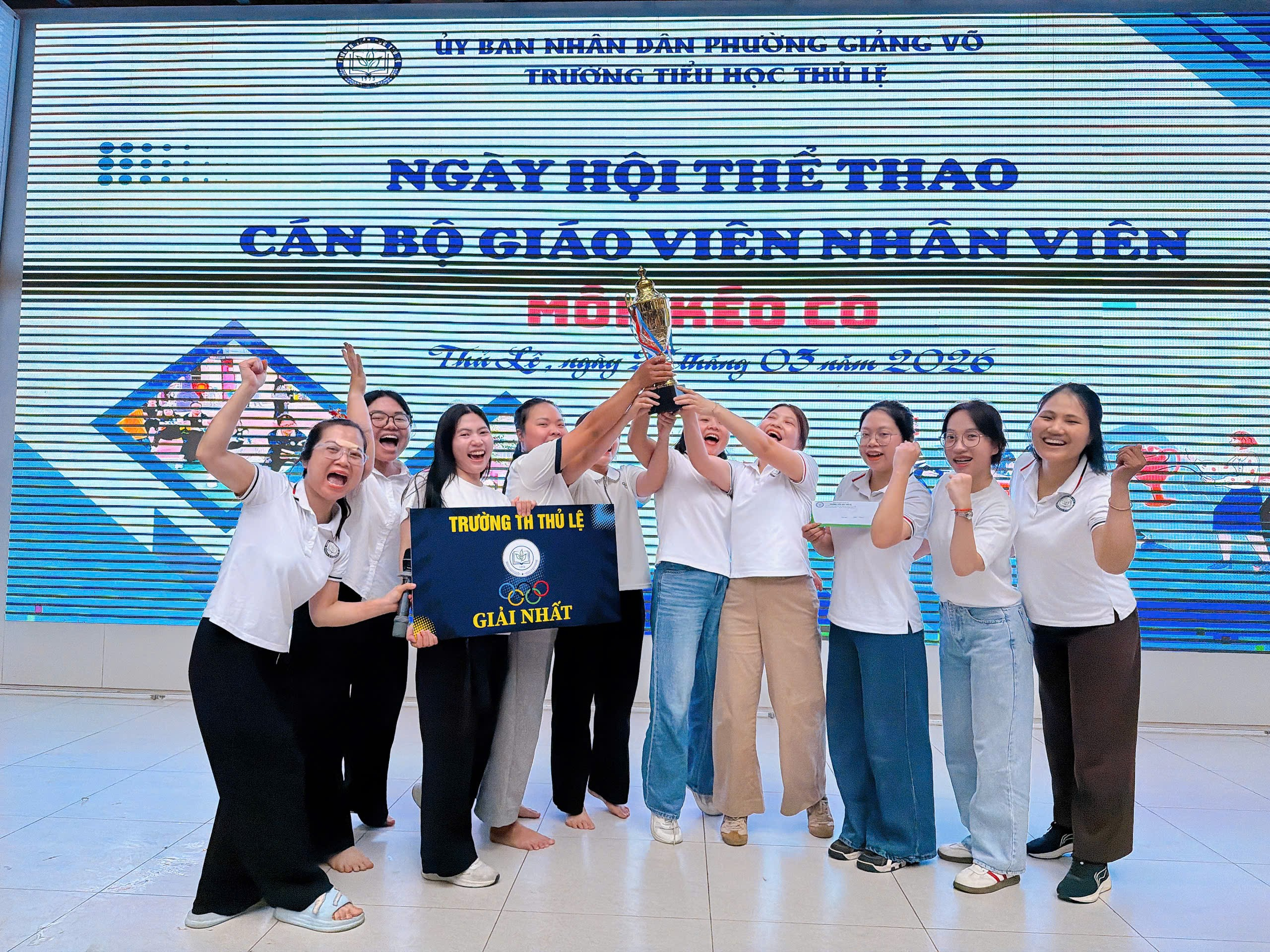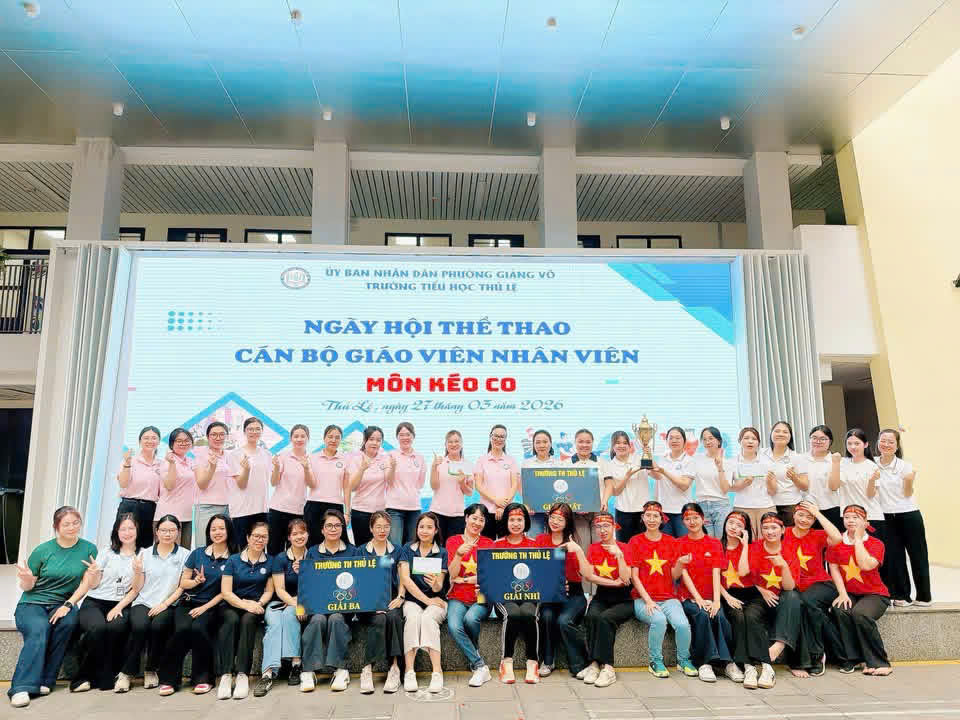 Chiều ngày 27/3/2026, trong không khí rộn ràng của Ngày hội thể thao, trường Tiểu học Thủ Lệ đã tổ chức Giải kéo co dành cho tập thể cán bộ giáo viên nhân viên - một hoạt động mang tính gắn kết cao, góp phần tạo sân chơi bổ ích và lan tỏa tinh thần thể thao trong nhà trường.
