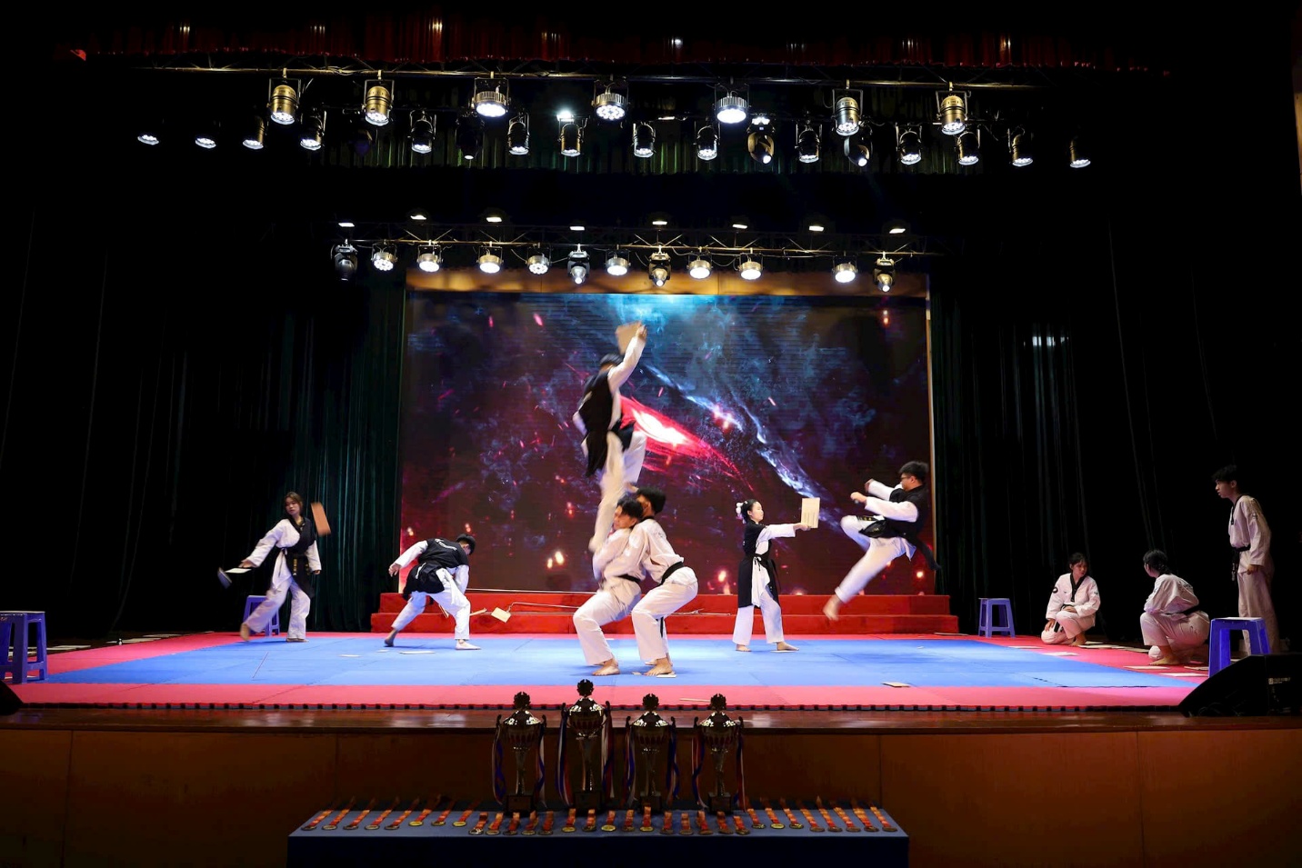 Các nội dung thi đấu gồm đối kháng và quyền cá nhân ở hai nhóm tuổi U12 và U14, áp dụng luật của Liên đoàn Taekwondo Thế giới, đảm bảo tính chuyên nghiệp, minh bạch. Đáng chú ý, phần biểu diễn đồng đội với sự kết hợp nhiều lứa tuổi đã tạo điểm nhấn giàu tính nghệ thuật, thể hiện rõ tinh thần kỷ luật và đoàn kết của võ sinh.