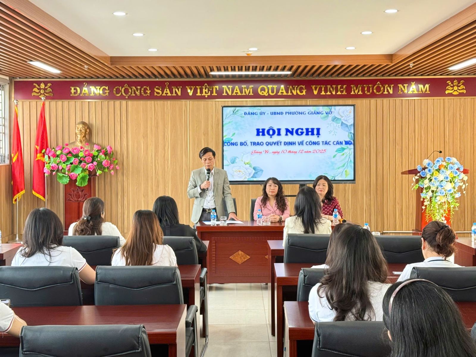 Thực hiện Quyết định số 803/QĐ-UBND ngày 04/12/2025 của Ủy ban nhân dân phường Giảng Võ, chiều ngày 10/12/2025, tổ công tác cán bộ phường đã về công bố và trao quyết định bổ nhiệm chức danh Hiệu trưởng Trường Tiểu học Thủ Lệ đối với đồng chí Nguyễn Ngọc Anh. Kể từ ngày 05/12/2025, đồng chí Nguyễn Ngọc Anh – Phó Bí thư Chi bộ, Phó Hiệu trưởng nhà trường được bổ nhiệm giữ chức vụ Hiệu trưởng Trường Tiểu học Thủ Lệ.
