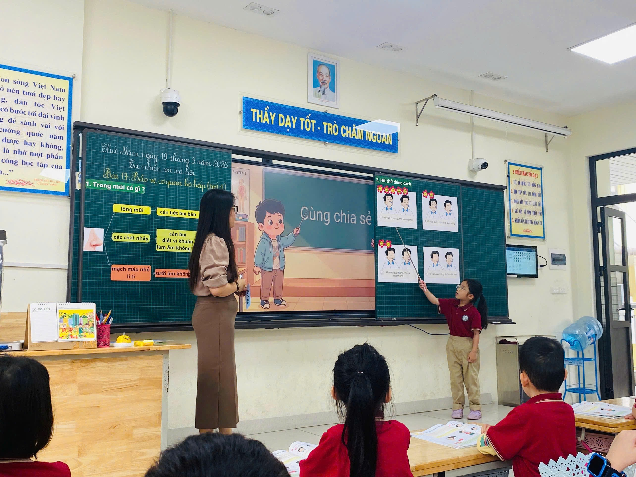 Tiết học chuyên đề không chỉ giúp học sinh lớp 2D hiểu được tầm quan trọng của cơ quan hô hấp mà còn hình thành thói quen hít thở đúng cách – một kỹ năng nhỏ nhưng vô cùng cần thiết cho sức khỏe lâu dài. Đây thực sự là một tiết học ý nghĩa, nơi kiến thức được gắn liền với trải nghiệm, giúp các em học mà vui, vui mà học.