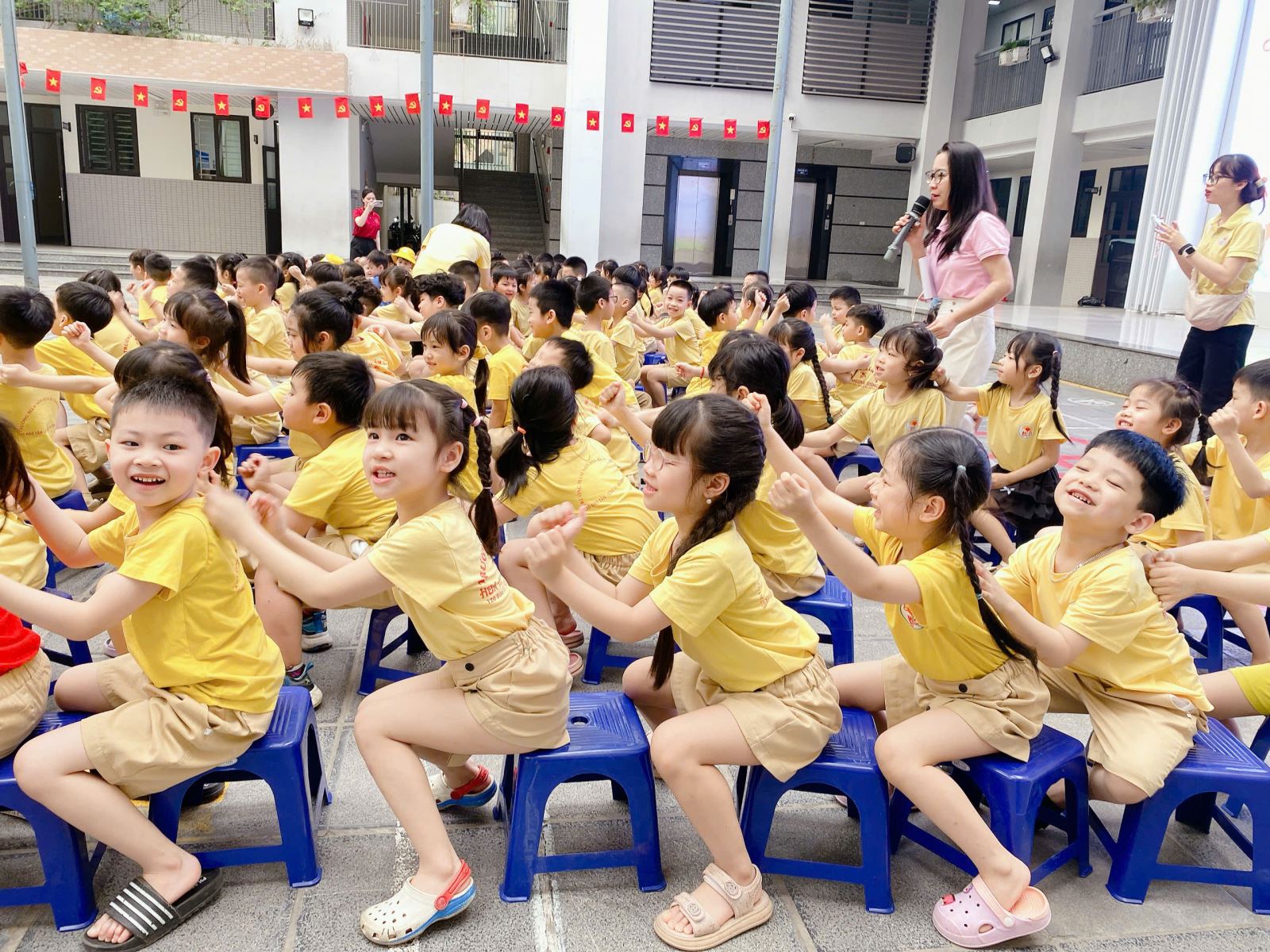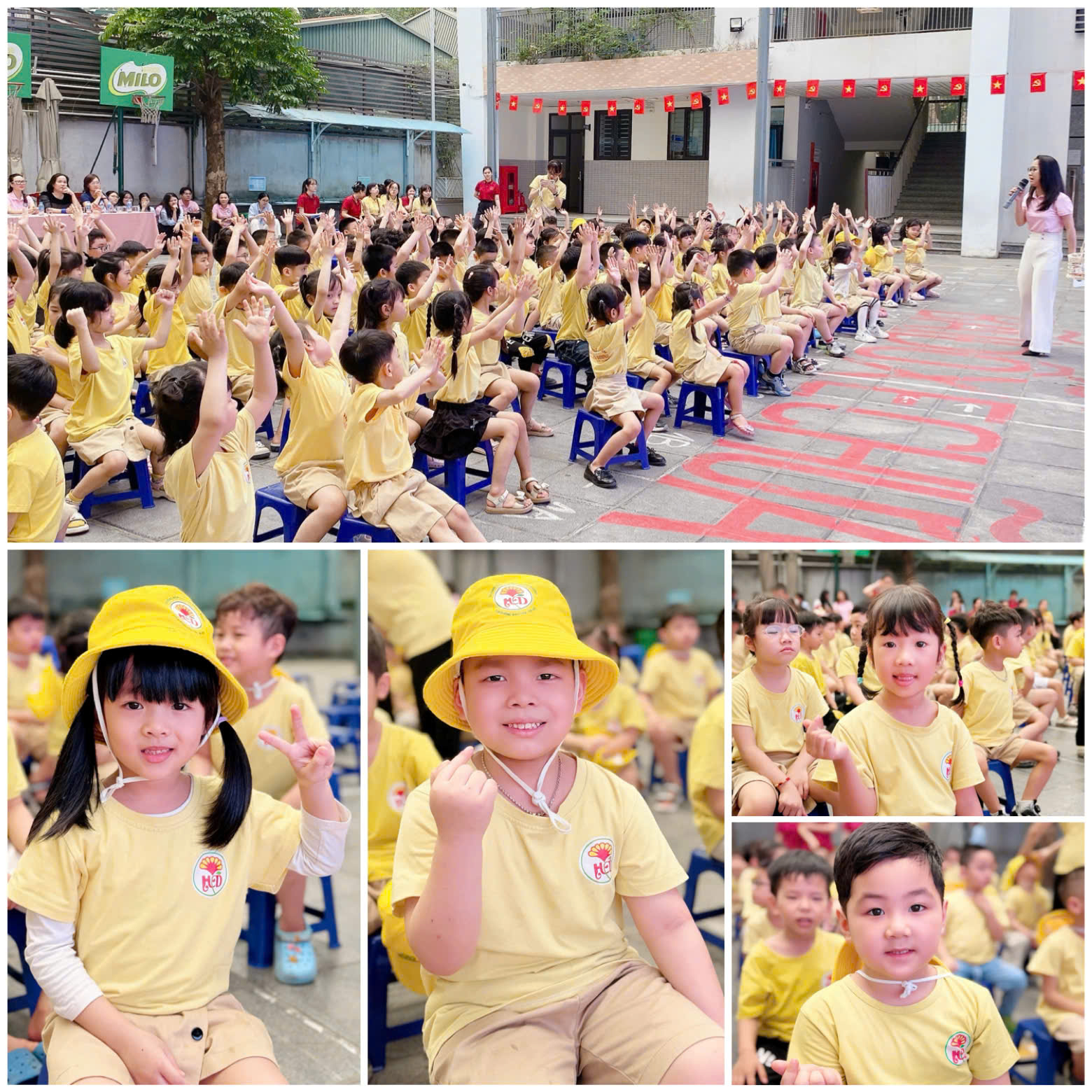 Điểm nhấn của ngày trải nghiệm chính là chuỗi hoạt động phong phú, được thiết kế phù hợp với lứa tuổi. Các bé được xem video giới thiệu về nhà trường, tham gia vận động tập thể, tìm hiểu những điều thú vị về bậc Tiểu học và mạnh dạn thể hiện năng khiếu của bản thân.