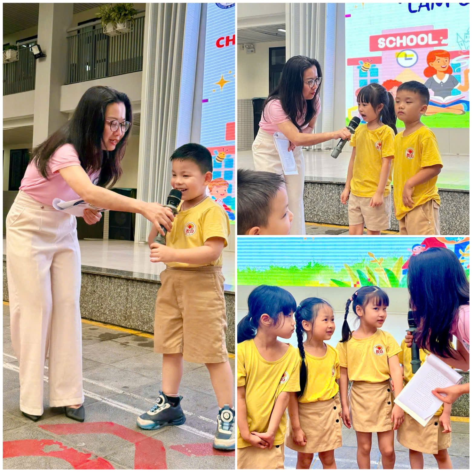Các bé tự tin giao lưu và thể hiện tài năng tại sân khấu trường Tiểu học Thủ Lệ.