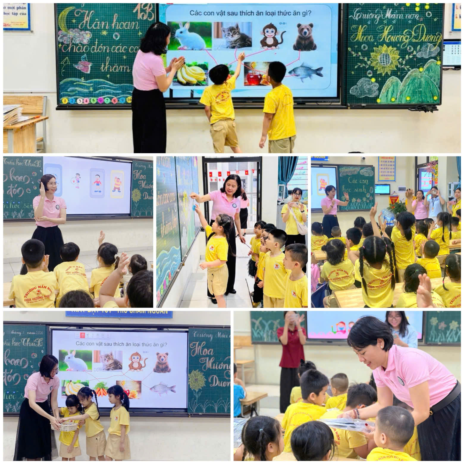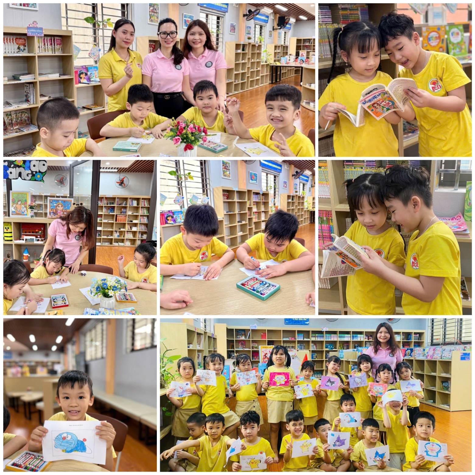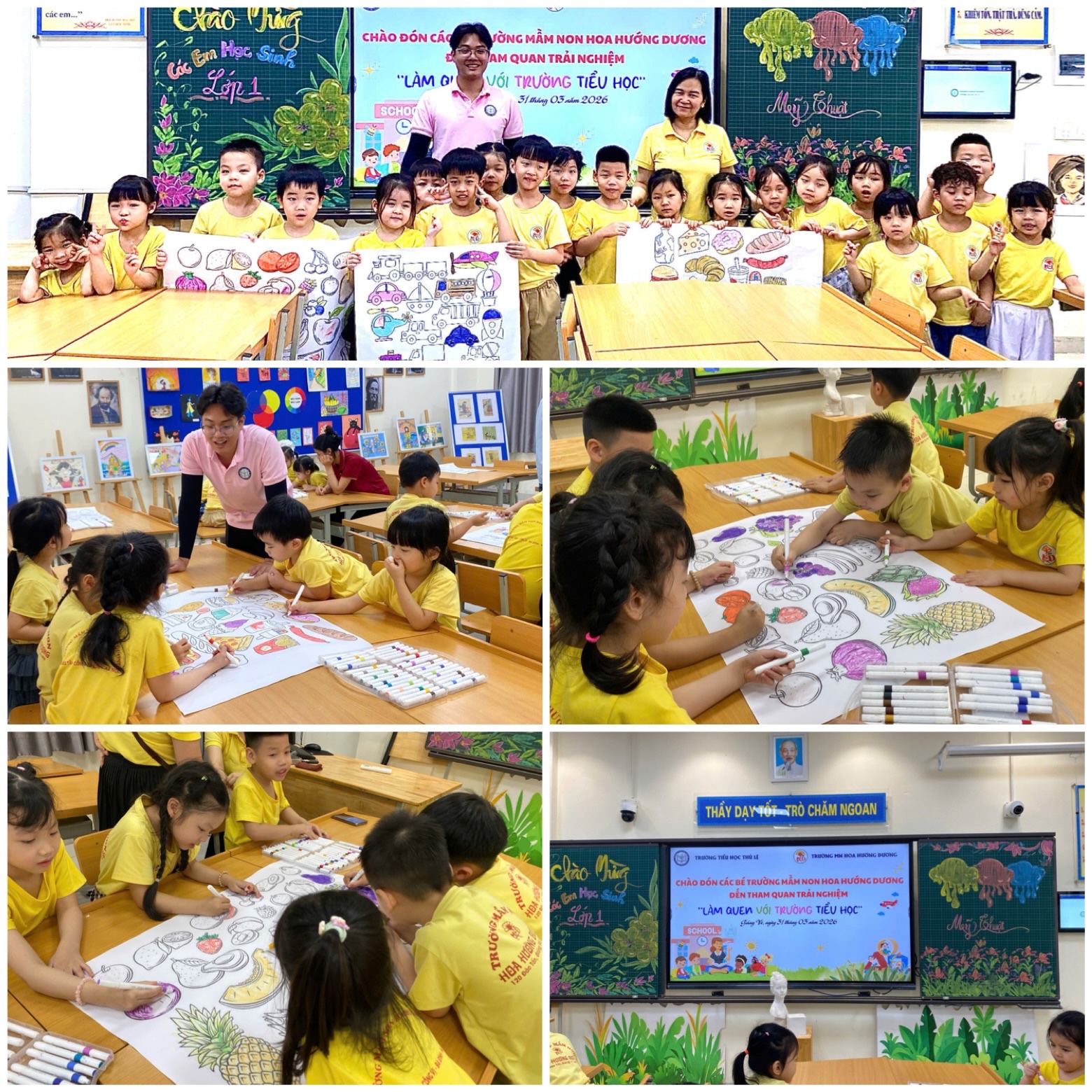 Một điểm nhấn ý nghĩa của chương trình là các bé còn được trực tiếp tham gia học tập cùng các anh chị học sinh lớp 1 trong các tiết học thực tế. Tại đây, các em được làm quen với không khí lớp học, cách giơ tay phát biểu, tham gia các hoạt động học tập dưới sự hướng dẫn tận tình của giáo viên. Trải nghiệm này không chỉ giúp các bé thêm tự tin, hào hứng mà còn góp phần hình thành những hình dung đầu tiên về nề nếp, phương pháp học tập ở bậc Tiểu học.