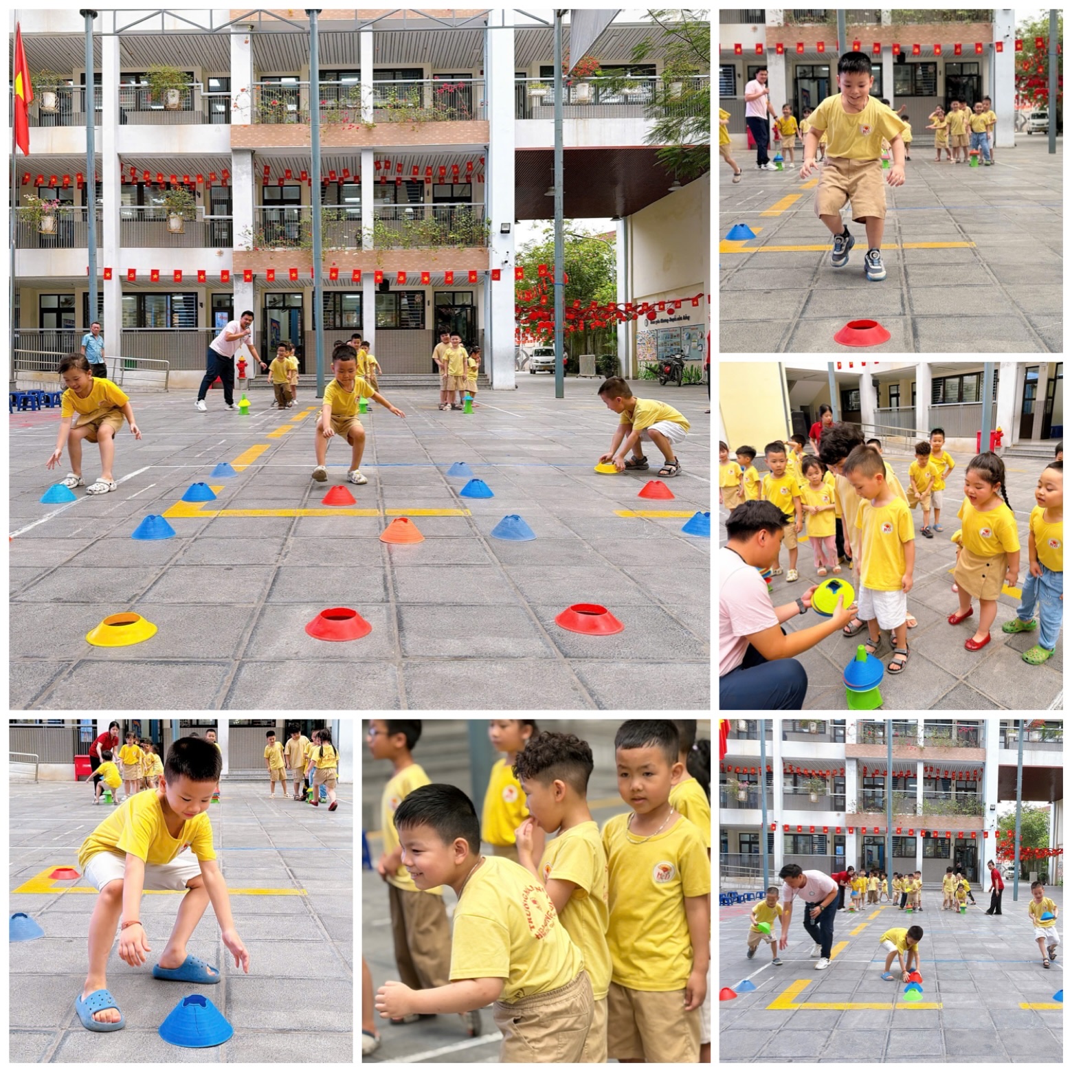 Sôi động cùng trạm trò chơi vận động tại sân trường cùng các thầy cô tổ Thể dục.