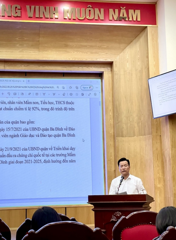 Lớp bồi dưỡng được tổ chức theo hình thức trực tiếp kết hợp trực tuyến từ điểm cầu hội trường tầng 2 trụ sở Quận ủy-HĐND-UBND quận tới điểm cầu các trường Mầm non, Tiểu học, THCS trên địa bàn quận. Thông qua công tác bồi dưỡng chính trị, giúp cho đội ngũ cán bộ lãnh đạo quản lý và giáo viên nâng cao trách nhiệm, bản lĩnh chính trị, niềm tin và chuẩn mực đạo đức nhà giáo, góp phần hoàn thành tốt mục tiêu, nhiệm vụ trong năm học 2022-2023, đáp ứng yêu cầu đổi mới căn bản, toàn diện giáo dục và đào tạo. Việc bồi dưỡng chính trị hè cho đội ngũ giáo viên là việc làm thường xuyên định kỳ hàng năm, thiết thực, nhằm bồi dưỡng kiến thức mới phục vụ cho công tác quản lý, giảng dạy tại các cơ sở giáo dục trên địa bàn quận Ba Đình.