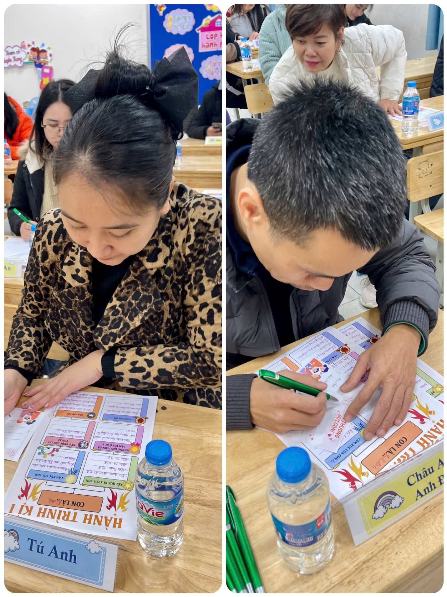 Trước cha mẹ và thầy cô, các bạn học sinh được nói lên những suy nghĩ, cảm xúc riêng của mình mà bấy lâu nay khó nói ra. Khi ngắm nhìn các con tự tin biểu diễn, nhiều phụ huynh đã không giấu được sự xúc động. Cuộc họp phụ huynh còn mang đến niềm vui bất ngờ cho các bậc cha mẹ khi được chứng kiến các con có nhiều chuyển biến tích cực trong cách cư xử, đặc biệt về tính tự giác và tính kỷ luật. Dưới sự hướng dẫn của giáo viên chủ nhiệm, bạn nào cũng đều cảm thấy rất vui và tự hào khi được phân công đảm nhiệm những vai trò lãnh đạo khác nhau để rèn luyện bản thân trở nên trưởng thành, đĩnh đạc và tự tin hơn rất nhiều. Sau đây là một số hình ảnh trong buổi họp phụ huynh: