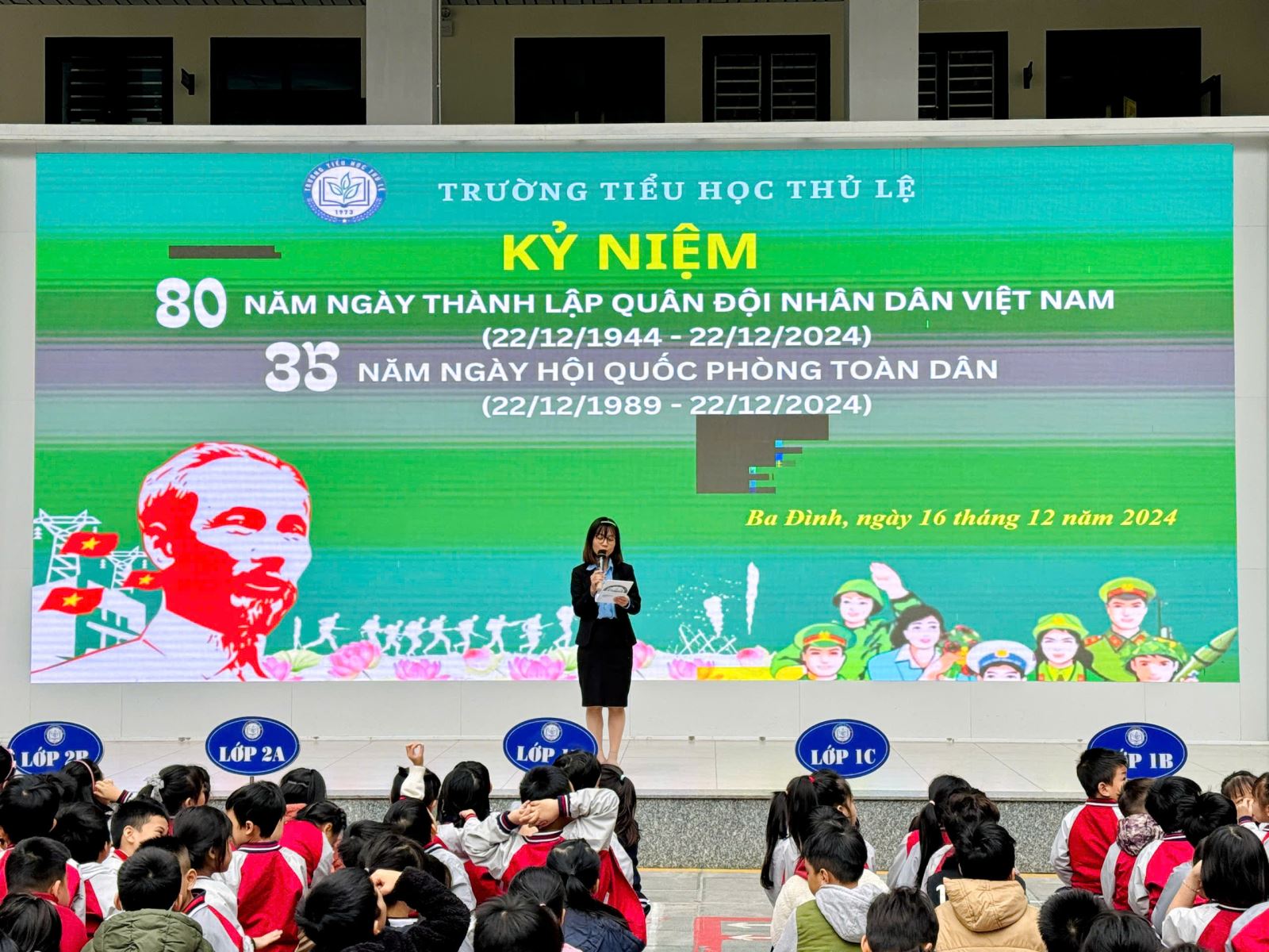 Sáng 16/12/2024, trường Tiểu học Thủ Lệ đã long trọng tổ chức chương trình Lễ kỷ niệm 80 năm ngày Thành lập Quân đội Nhân dân Việt Nam (22/12/1944 – 22/12/2024) và 35 năm Ngày Hội Quốc phòng toàn dân (22/12/1989 – 22/12/2024).