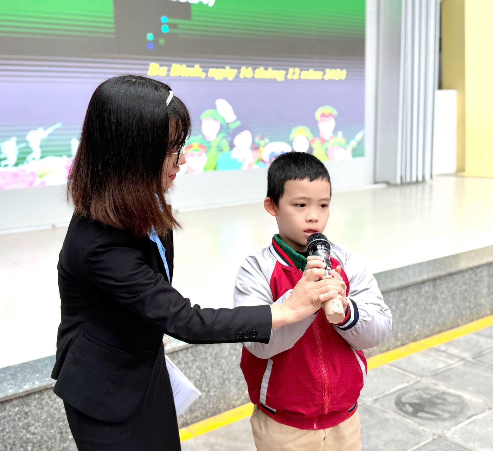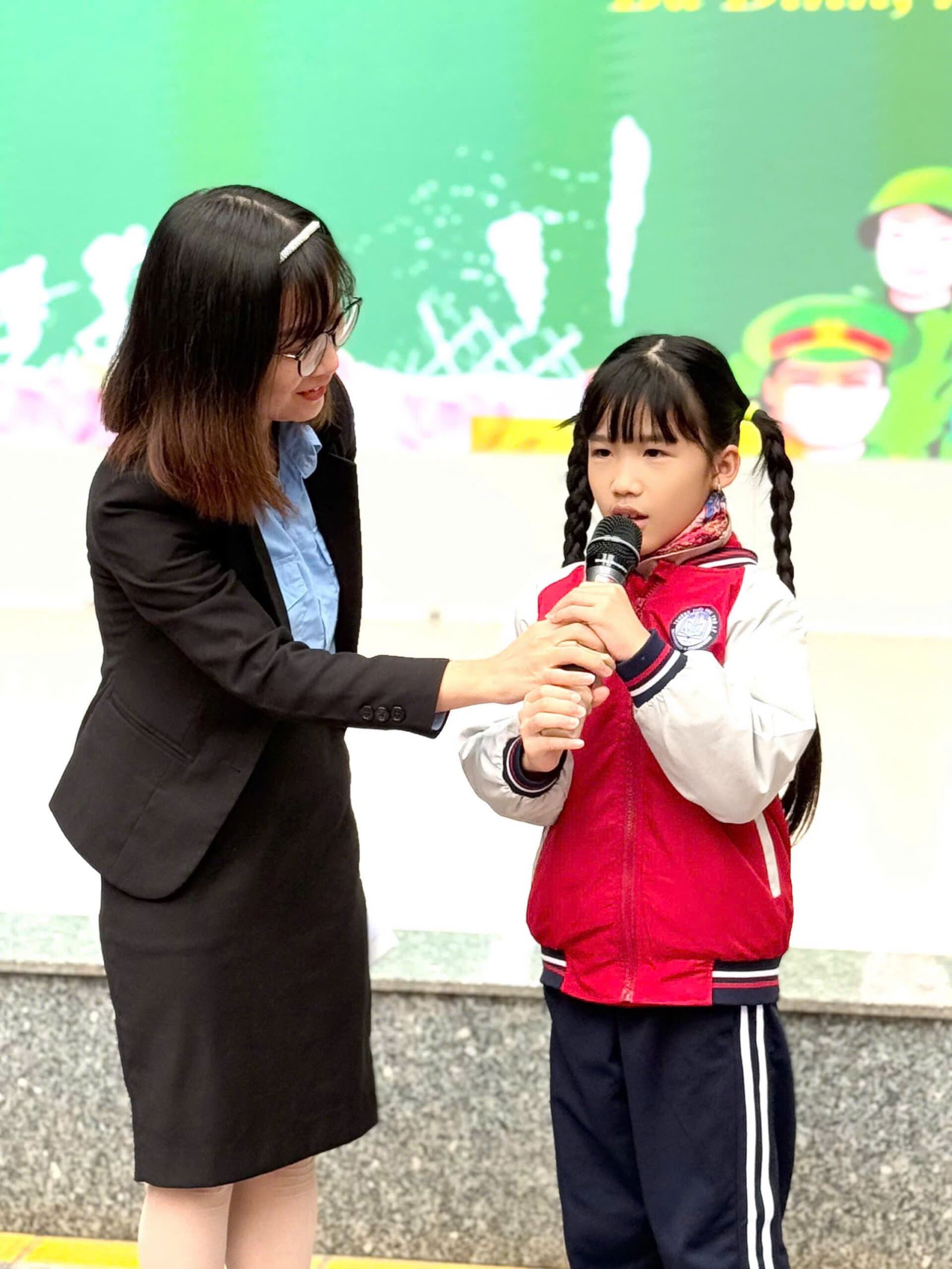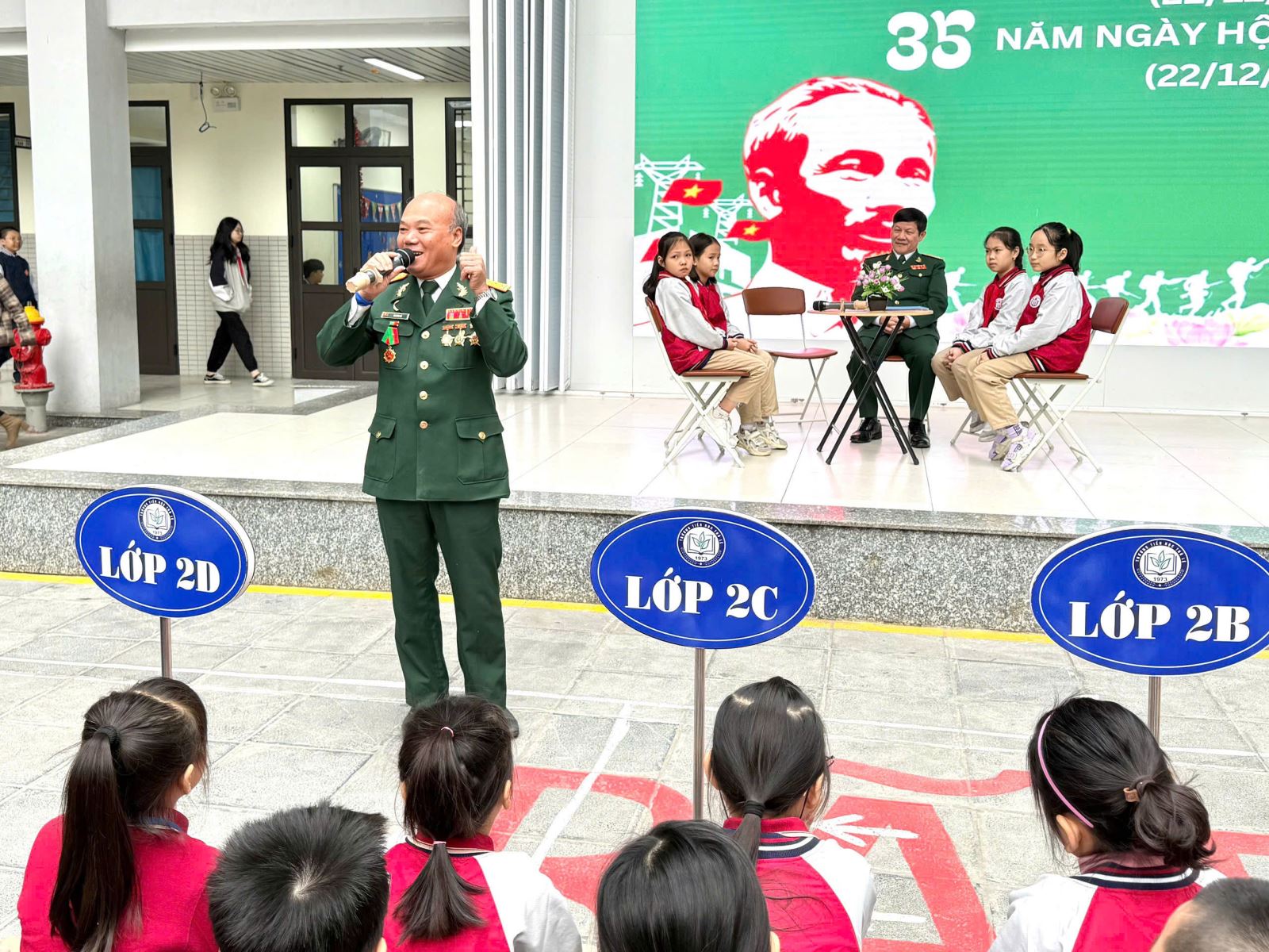 Tại buổi lễ, các em học sinh đã được ôn lại lịch sử truyền thống và ý nghĩa của ngày Thành lập Quân đội Nhân dân Việt Nam; Ngày Hội Quốc phòng toàn dân thông qua đoạn phim tư liệu ngắn. Đặc biệt hơn, các em học sinh còn được gặp gỡ và nghe các bác Cựu Chiến binh phường Ngọc Khánh kể chuyện lịch sử đồng thời giao lưu trò chuyện nhằm giúp các em học sinh hiểu thêm về những khó khăn, gian khổ mà cha ông ta đã phải đánh đổi để có thể chiến thắng trước kẻ thù xâm lược, giải phóng, bảo vệ và xây dựng đất nước Việt Nam tươi đẹp như ngày hôm nay.