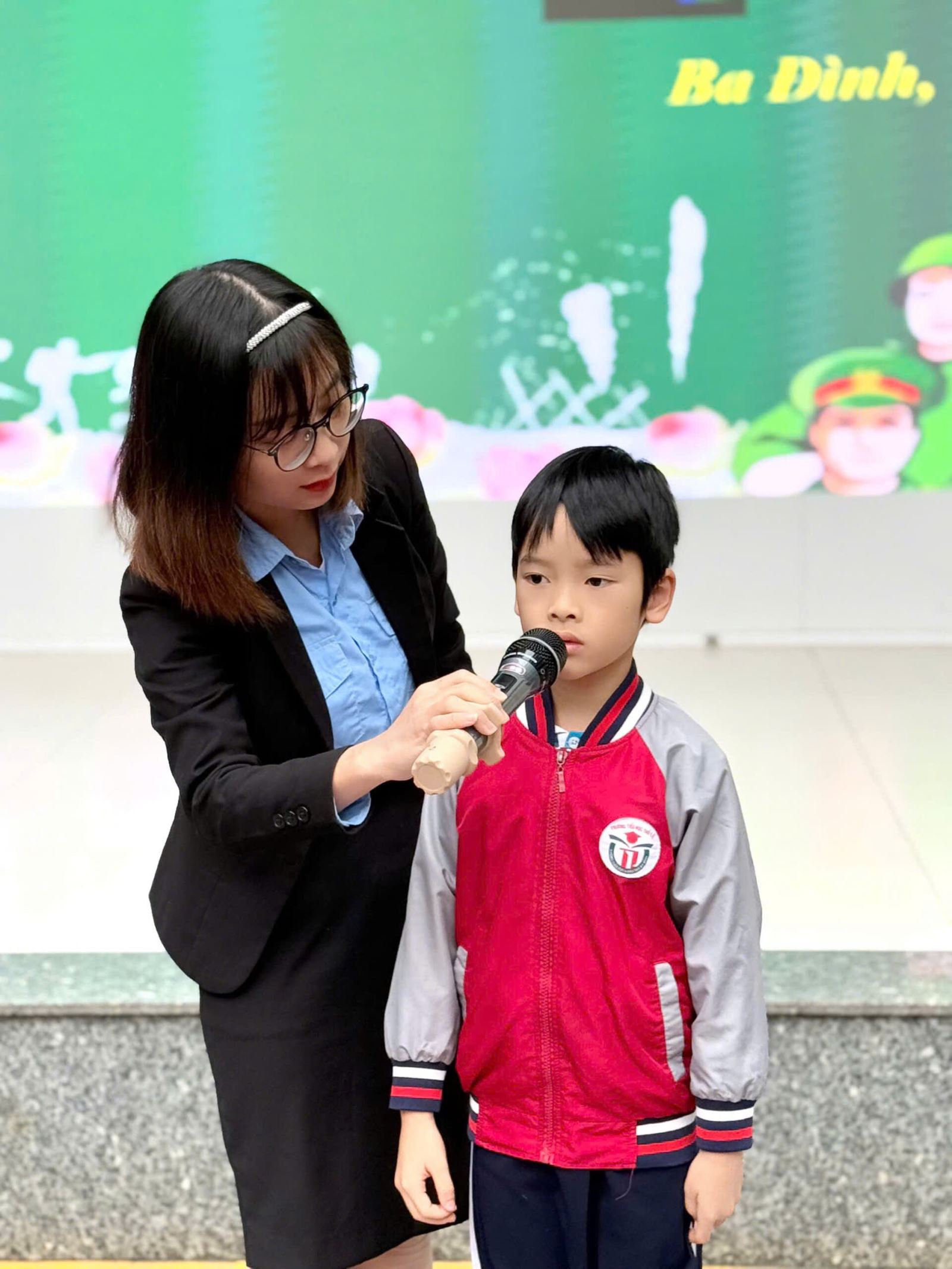 Kết thúc chương trình, Ban giám hiệu nhà trường, các thầy cô giáo và các con học sinh đã lên tặng hoa chúc mừng nhằm tri ân tới các thế hệ cha ông đi trước đã không quản sự hy sinh, khó khăn, gian khổ để dành lại độc lập tự do cho dân tộc.