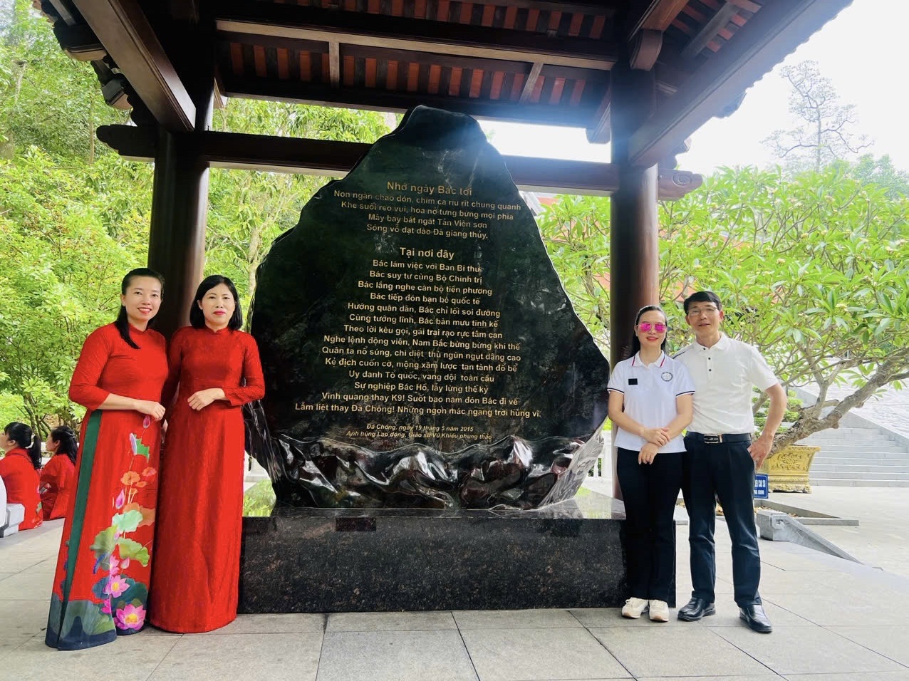 Không chỉ dừng lại ở việc trao đổi chuyên môn, chương trình còn mang ý nghĩa sâu sắc khi thầy cô hai trường cùng nhau thực hiện hành trình đến Khu di tích K9 Đá Chông – nơi lưu giữ thi hài Bác Hồ trong những năm đầu thập niên 70. Tại đây, các thầy cô đã dâng hương tưởng niệm và ôn lại truyền thống cách mạng, học tập tấm gương đạo đức, phong cách Hồ Chí Minh thông qua những hình ảnh, câu chuyện đầy cảm xúc.