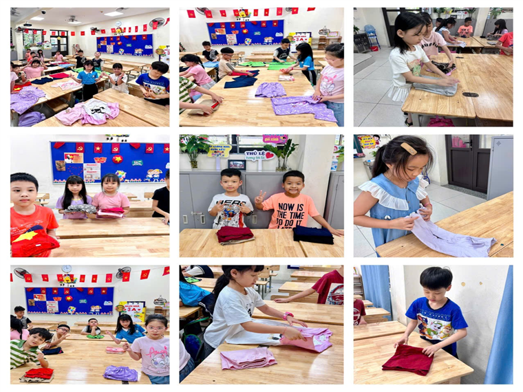 Với tiết học Hoạt động trải nghiệm các con được thực hành gấp quần áo, tìm hiểu về từ tính của nam châm, học cách tiết kiệm và bảo vệ nguồn nước một tài nguyên quý giá.