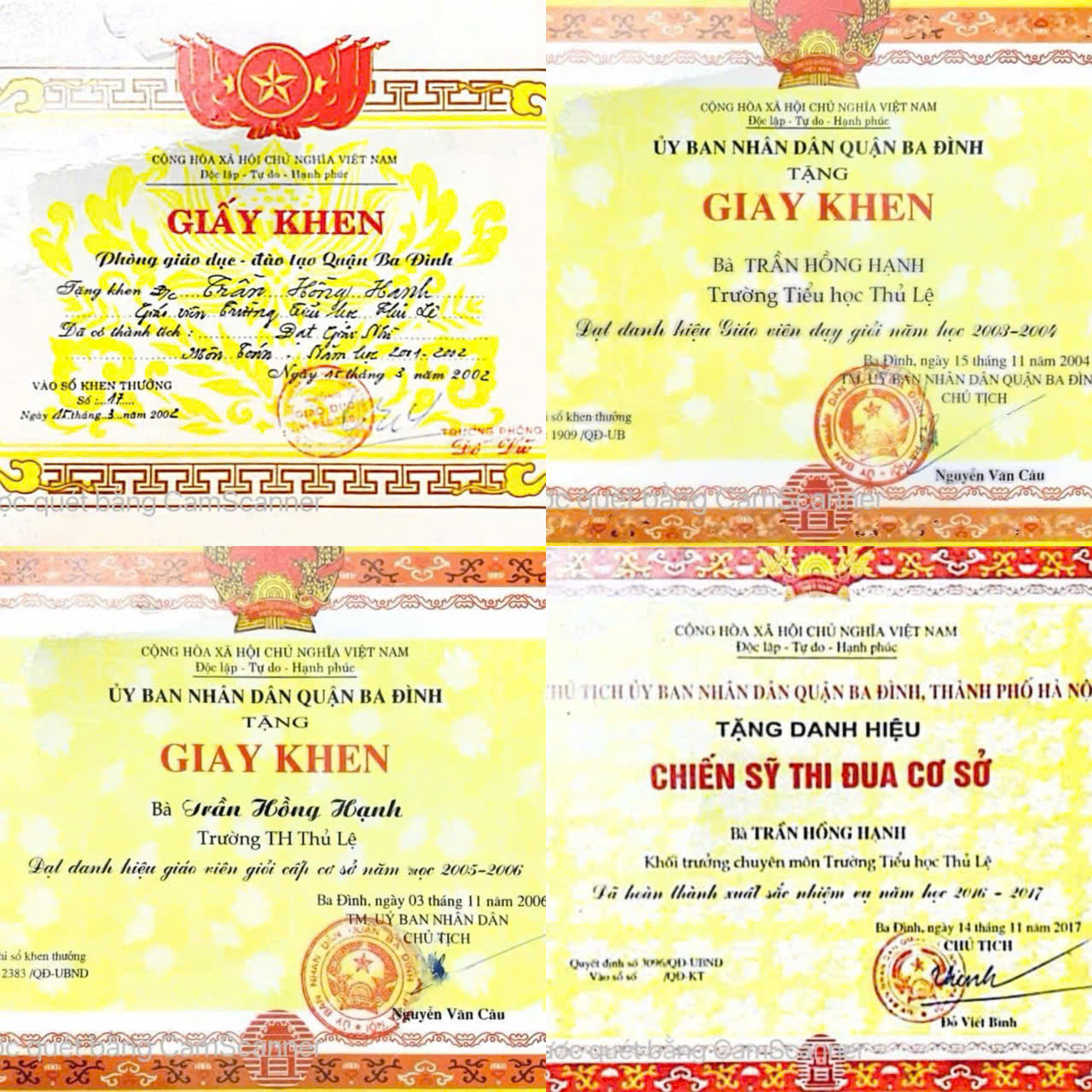 Nhiều năm liền cô đạt giải cao trong các cuộc thi Giáo viên dạy giỏi cấp Quận, đạt danh hiệu “Lao động Tiên tiến” và được nhận giấy khen của Chủ tịch UBND Quận Ba Đình.