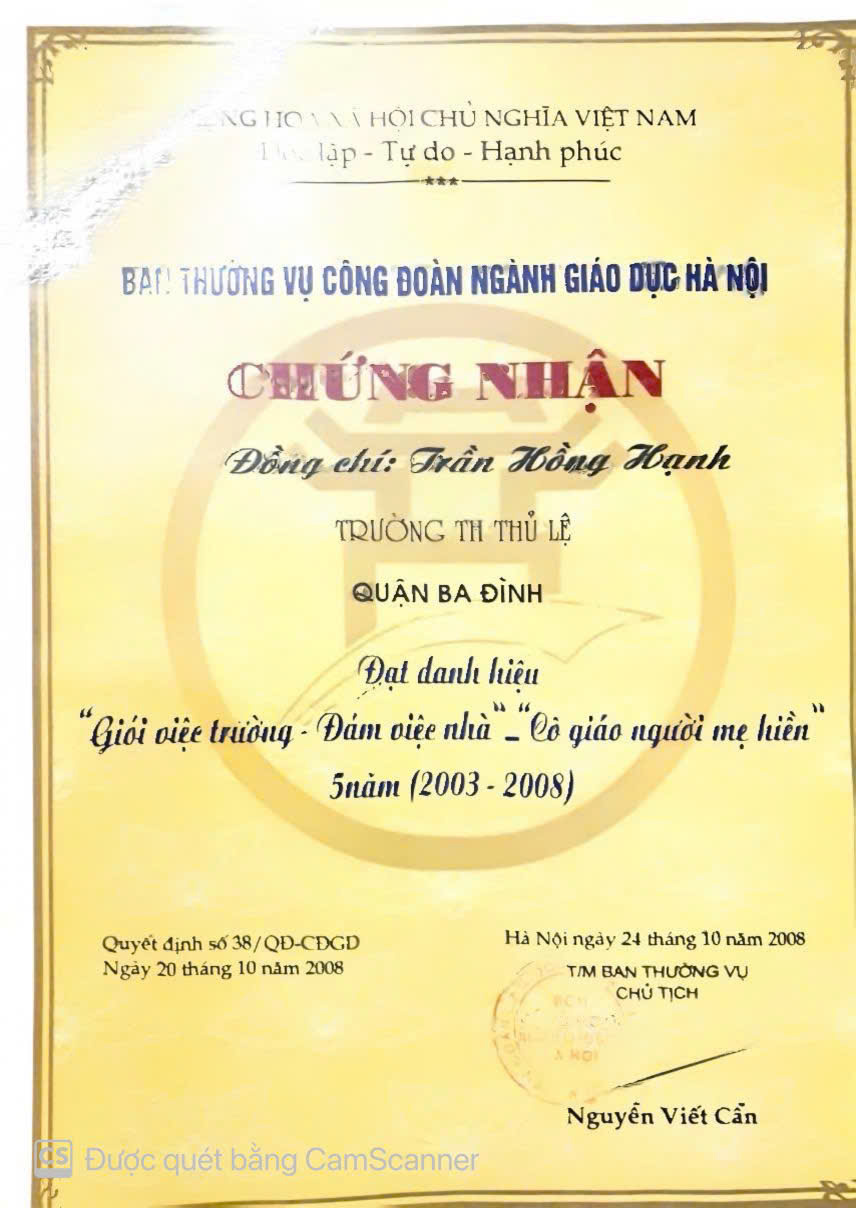 Cô giáo Trần Hồng Hạnh đã gắn bó với nghề trong nhiều năm qua. Sau khi tốt nghiệp đại học và ra trường, tháng 9/ 1989, cô được phân công công tác tại trường Tiểu học Thủ Lệ từ khi còn là một giáo viên trẻ đầy nhiệt huyết cho đến khi trở thành một người thầy giàu kinh nghiệm, được đồng nghiệp và học sinh quý trọng.