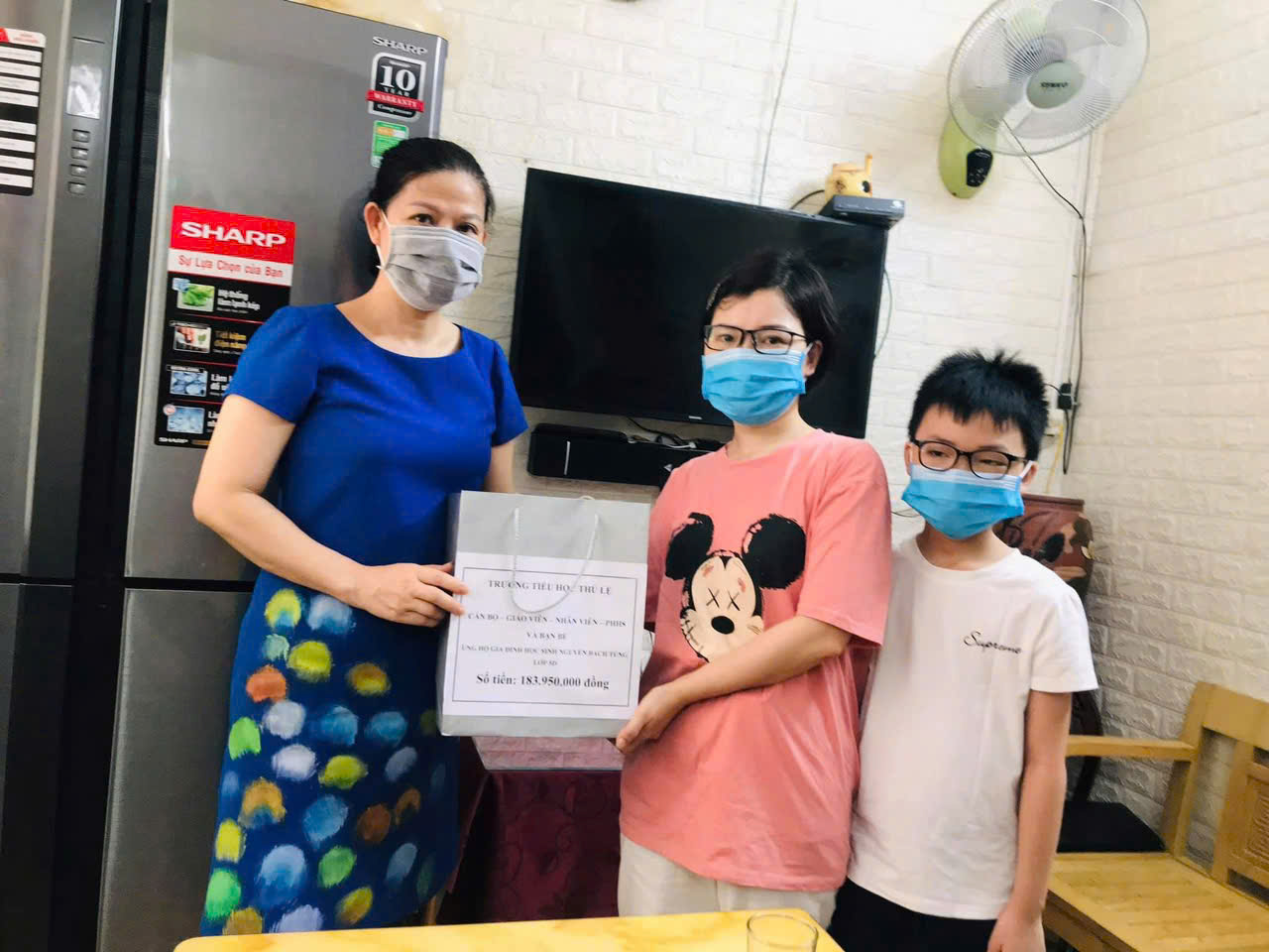 Cô Trần Hồng Hạnh - đại diện nhà trường trao tặng qùa cho gia đình học sinh có hoàn cảnh khó khăn