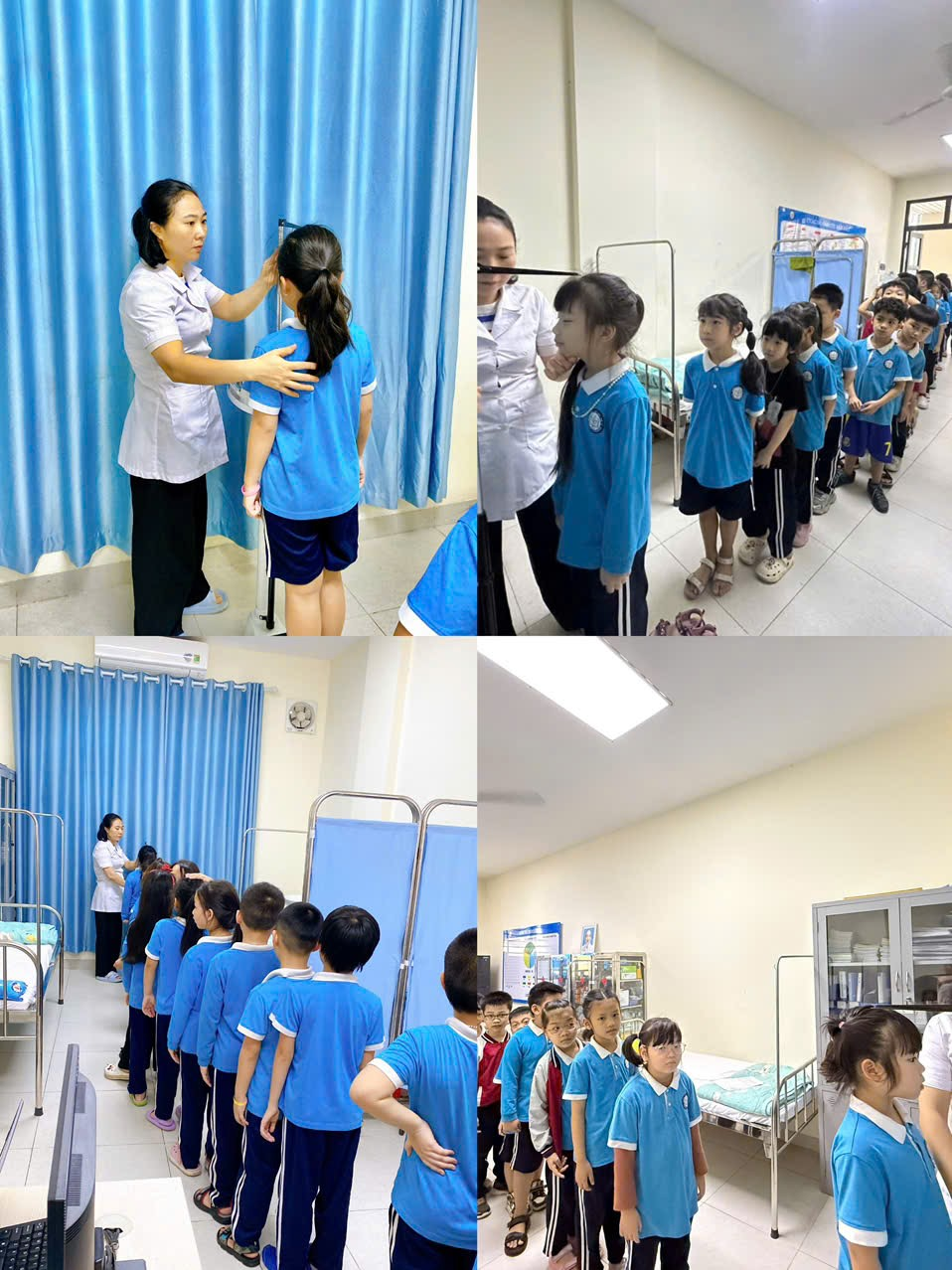 Thực hiện theo đúng kế hoạch năm học 2024-2025, nhân viên y tế nhà trường đã thực hiện đo cân nặng, chều cao cho học sinh vào cuối năm học, nhằm theo dõi sự phát triển của mỗi học sinh. Từ đó nhà trường phối hợp với gia đình để có những biện pháp kịp thời đối với những trường hợp trẻ thừa cân, béo phì suy dinh dưỡng. Dưới đây là một số hình ảnh nhân viên Y tế cân đo sức khỏe cho học sinh cuối năm học 2024-2025.