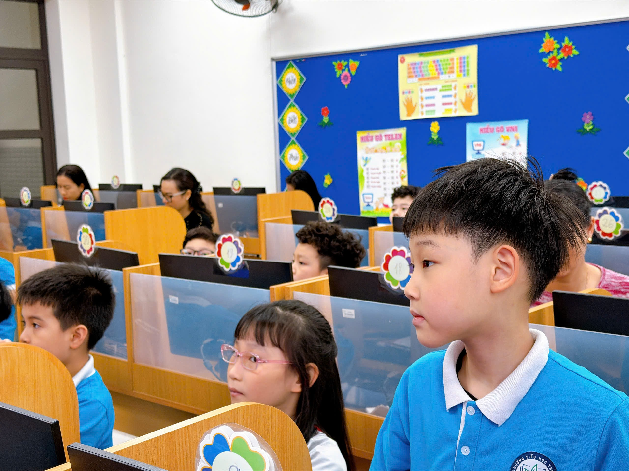 Không khí lớp học diễn ra sôi nổi khi các con chăm chú lắng nghe, tích cực thực hành trên máy tính và mạnh dạn trả lời câu hỏi của cô giáo. Mỗi thao tác nhỏ như gõ chữ, sắp xếp nội dung hay lựa chọn cách trình bày đều mang lại cho các con học sinh sự thích thú và cảm giác khám phá điều mới mẻ. Thông qua tiết học, các con không chỉ bước đầu hiểu được cách tạo một bài trình chiếu đơn giản mà còn rèn luyện kỹ năng sử dụng máy tính, tính cẩn thận và sự tự tin trong học tập.