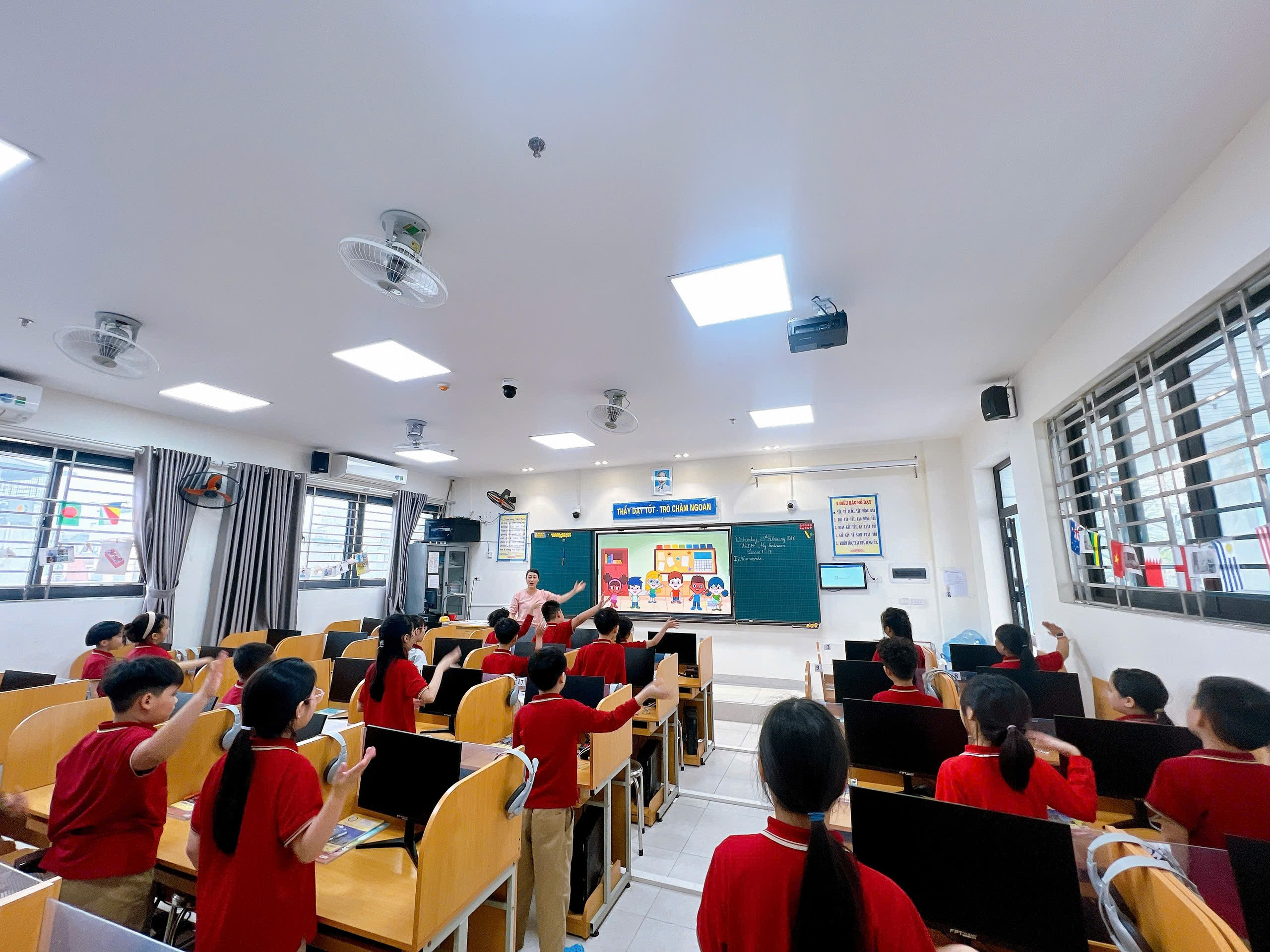Trong tiết học Tiếng Anh với chủ đề Unit 14: My bedroom, cô Hồng đã mang đến một không khí lớp học vô cùng sinh động và gần gũi. Ngay từ phần khởi động, các em học sinh đã được tham gia múa hát vui nhộn, tạo tâm thế hào hứng trước khi bước vào bài học.