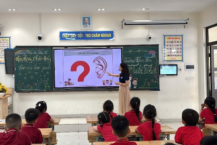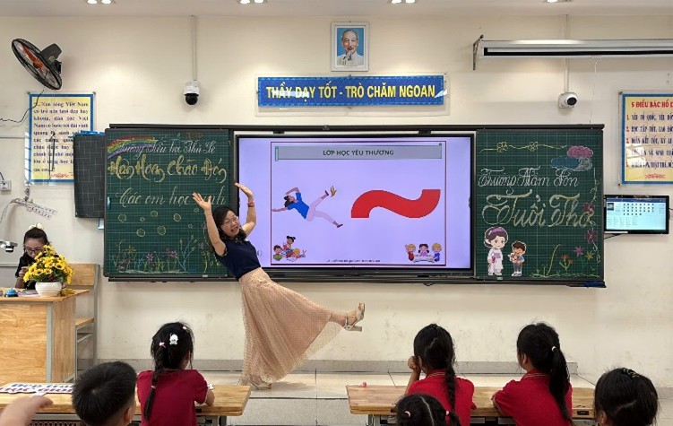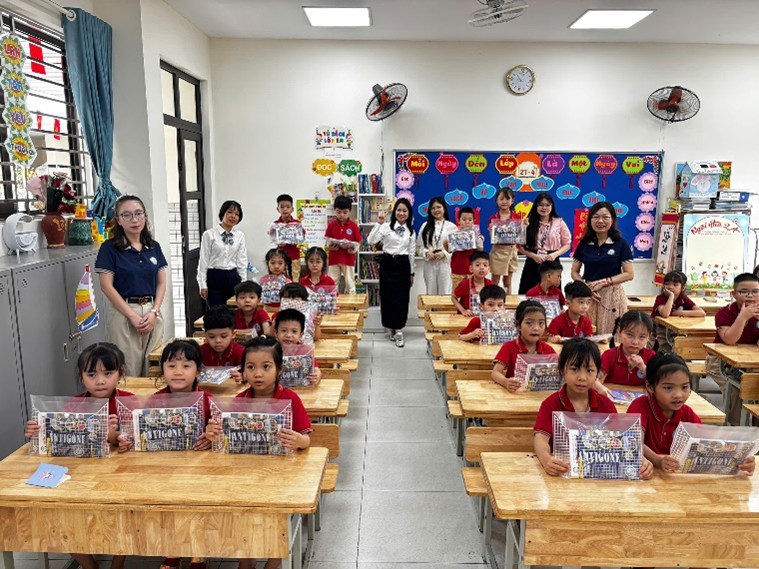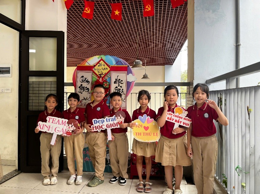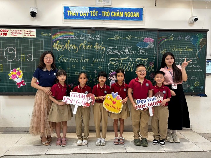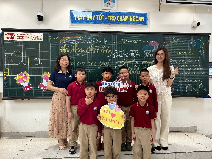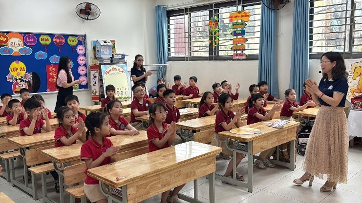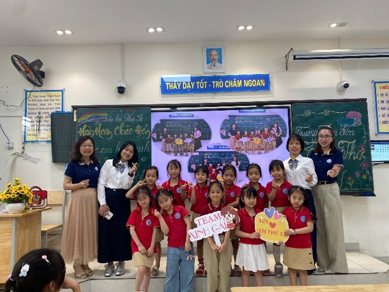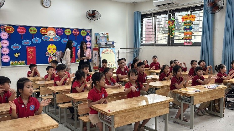 Khoảnh khắc tương tác đáng yêu giữa học sinh lớp 2A và các em