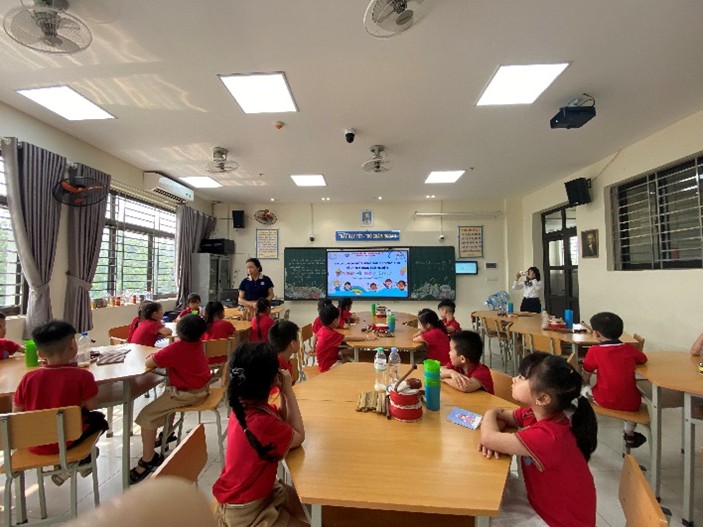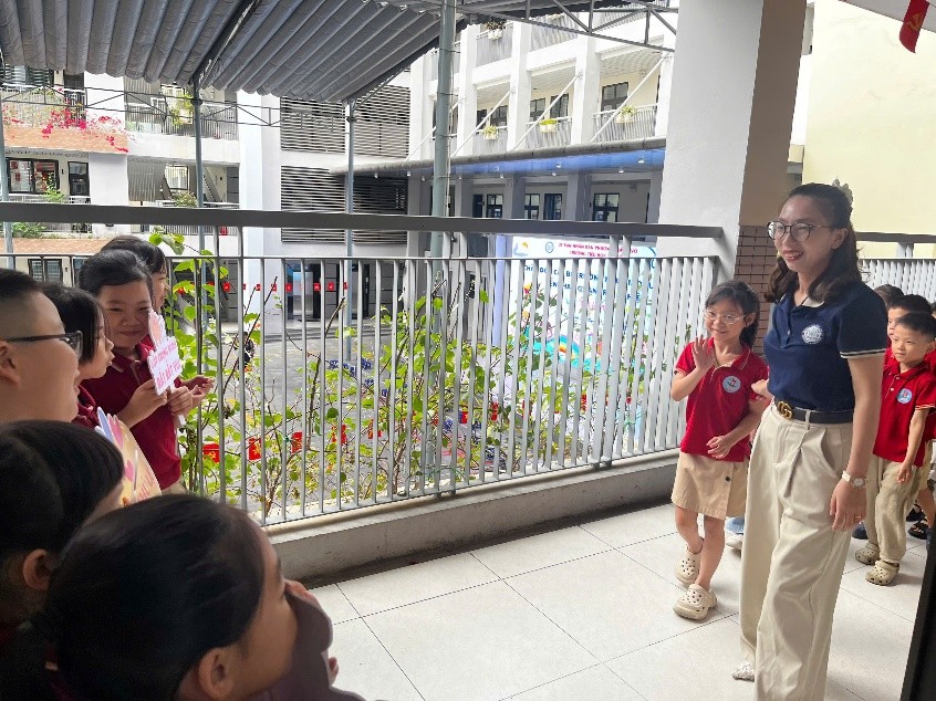 Đặc biệt, các anh chị lớp 2A đã thể hiện sự tự tin, lễ phép và thân thiện khi hướng dẫn, chia sẻ và giúp đỡ các em nhỏ. Đây không chỉ là dịp để các bé mầm non học hỏi mà còn là cơ hội để học sinh lớp 2A rèn luyện kỹ năng giao tiếp, tinh thần trách nhiệm và sự sẻ chia.