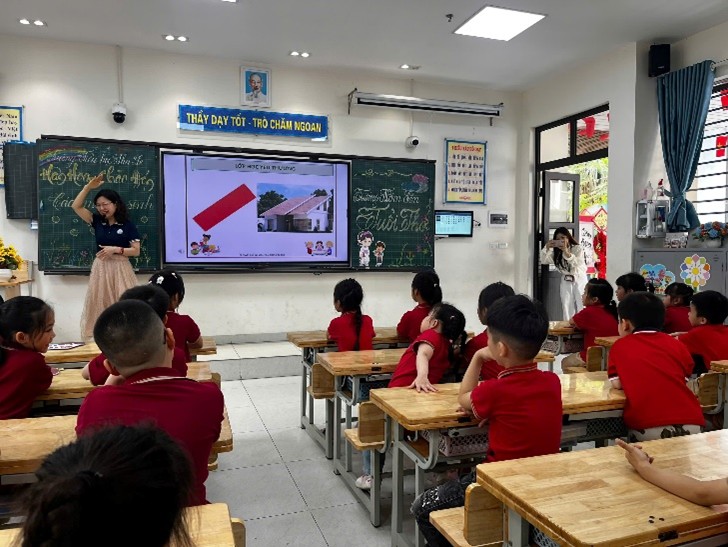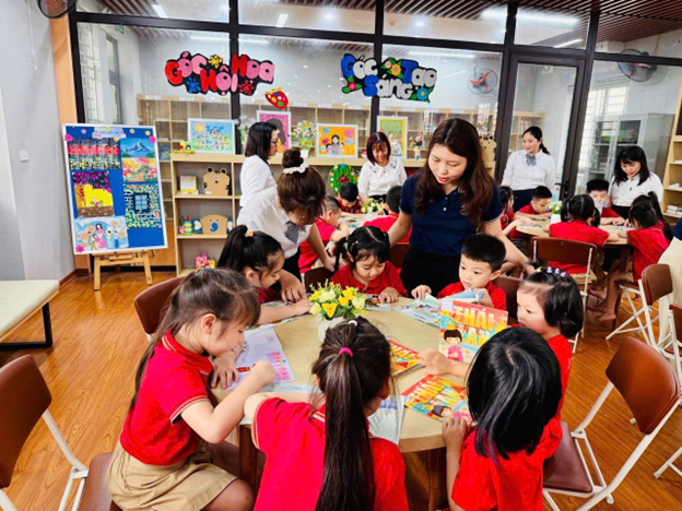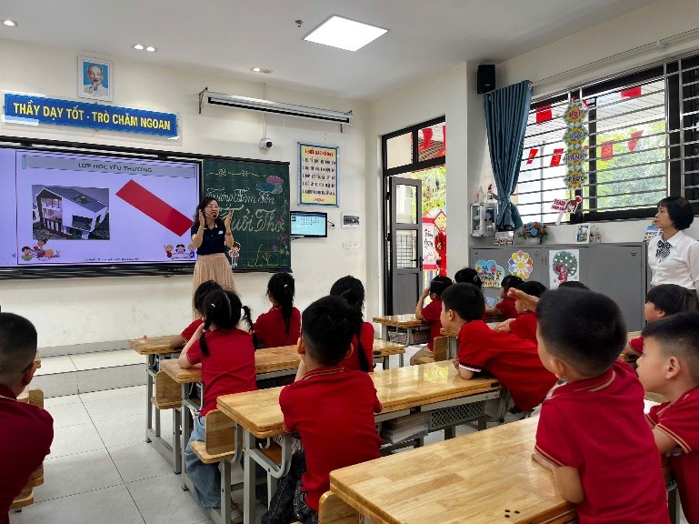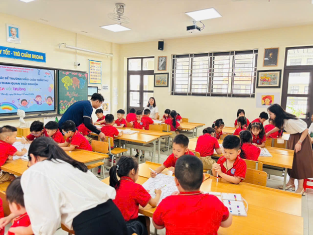 Trong buổi tham quan, các bé đã được quan sát một tiết học thực tế, trải nghiệm không gian lớp học tiểu học với bảng, sách, đồ dùng học tập và các hoạt động học tập sinh động. Bên cạnh đó, các em còn được tham gia vào những trò chơi nhỏ, giao lưu cùng các anh chị, qua đó cảm nhận được sự vui vẻ, gần gũi của môi trường tiểu học.