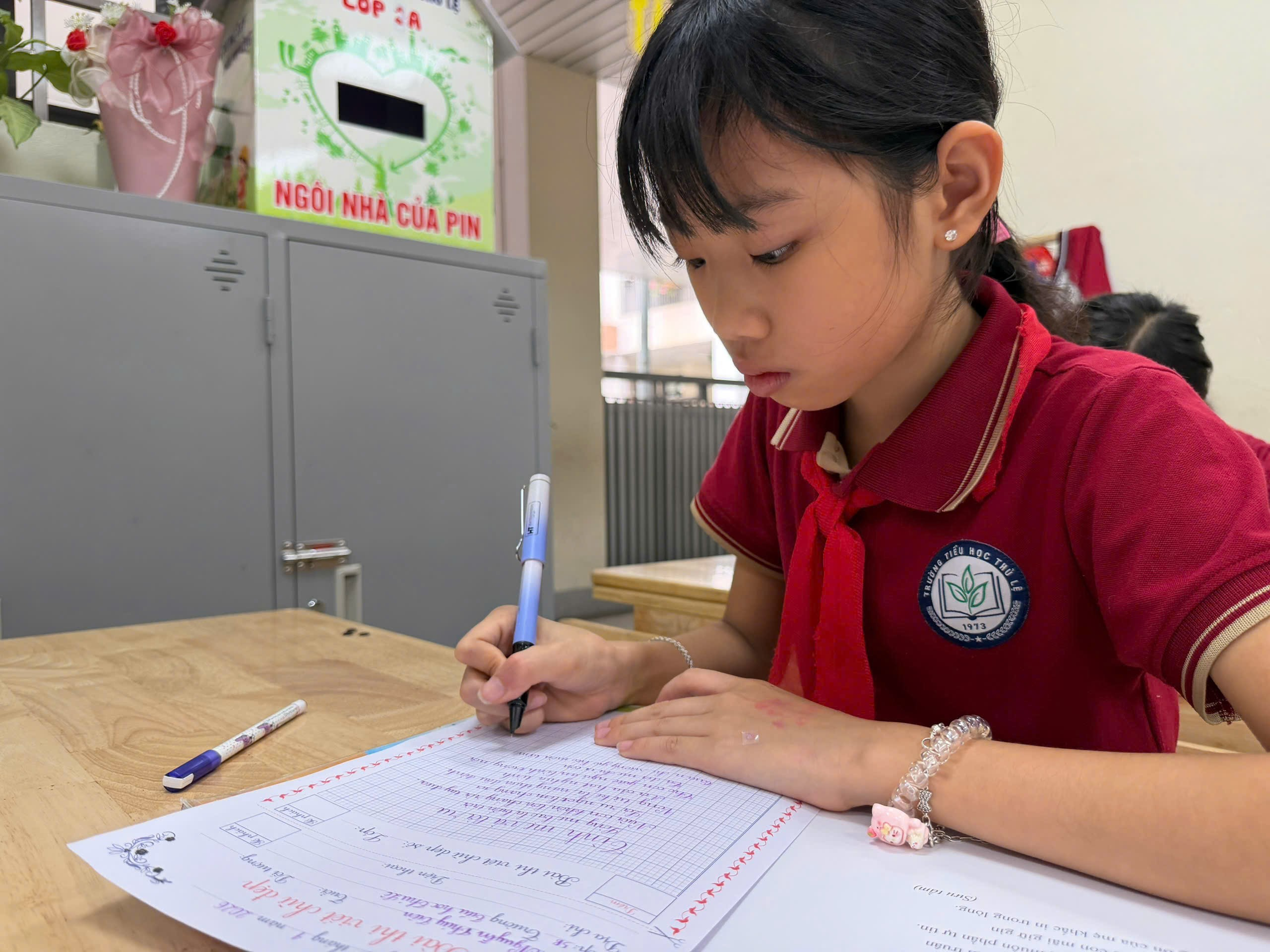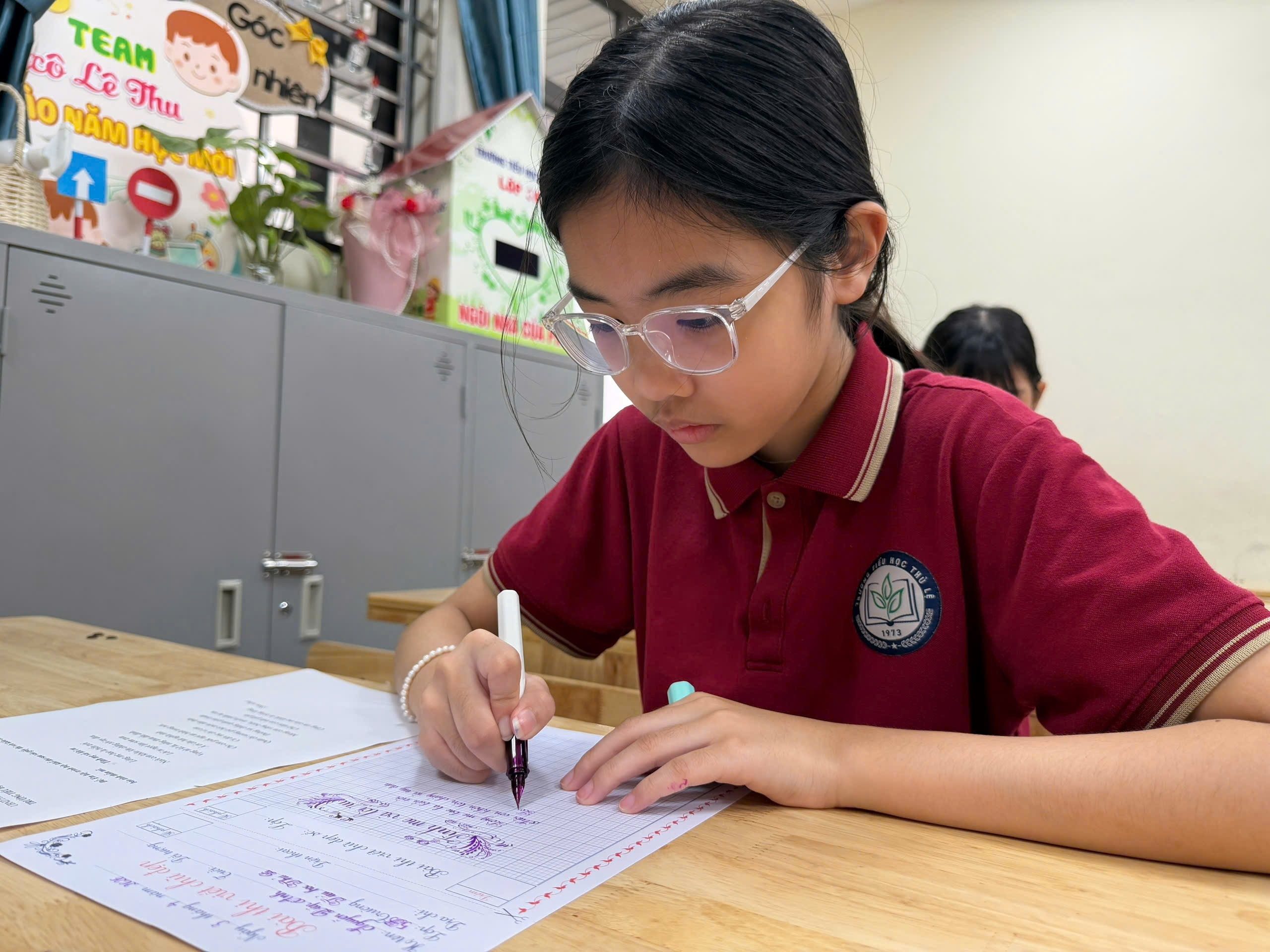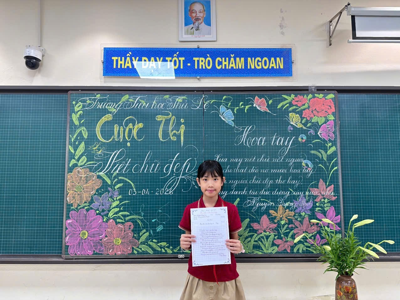 Đại diện cho lớp 5B, ba bạn học sinh tiêu biểu đã được lựa chọn tham gia cuộc thi. Đây đều là những gương mặt nổi bật với ý thức rèn luyện chữ viết thường xuyên, luôn cẩn thận, chỉn chu trong từng trang vở. Không chỉ có nét chữ đẹp, các em còn thể hiện sự kiên trì, tinh thần học tập nghiêm túc và niềm yêu thích đối với việc viết chữ.