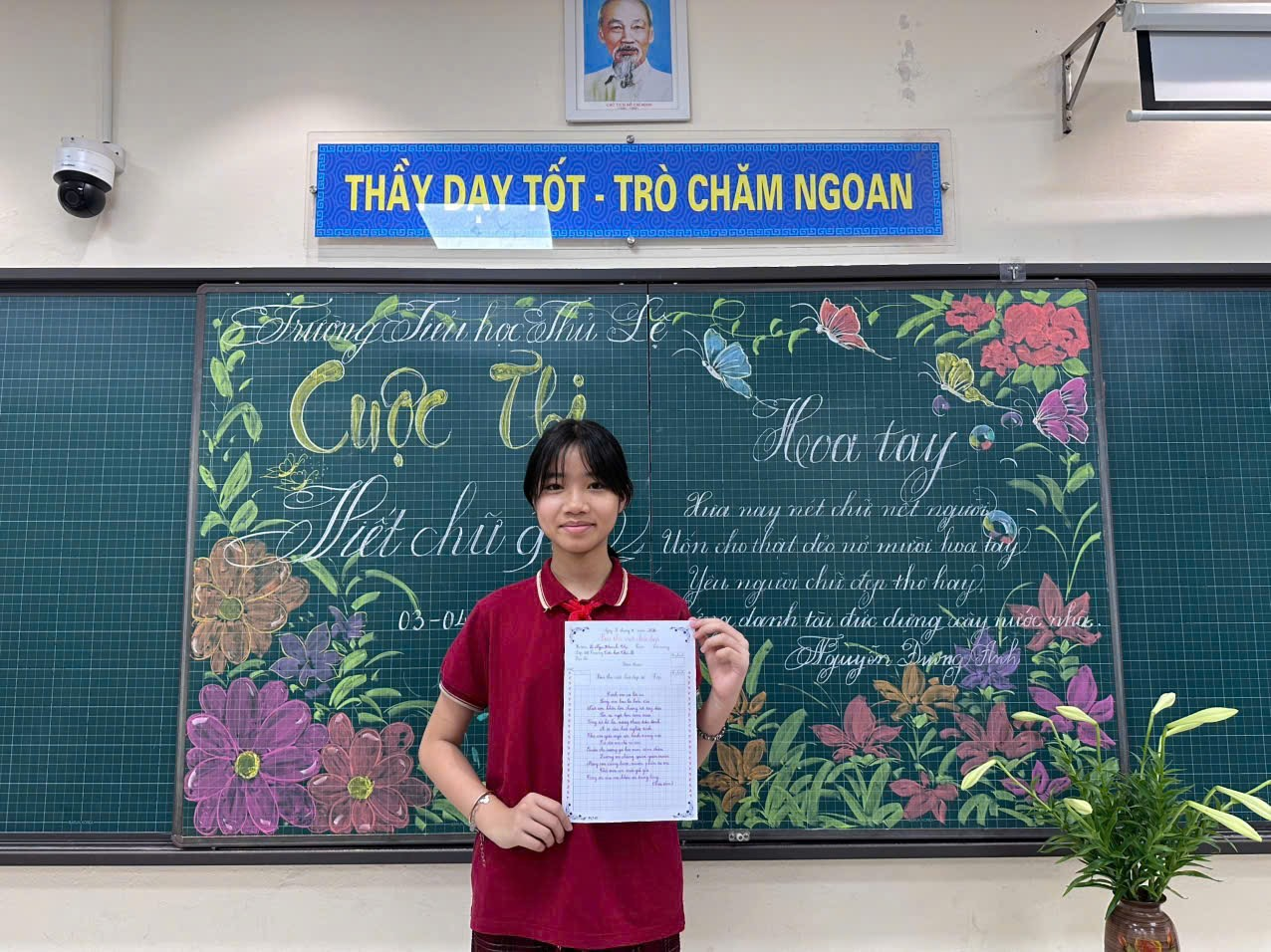 Sự tham gia tích cực của ba bạn học sinh không chỉ góp phần lan tỏa ý nghĩa của cuộc thi “Nét chữ đẹp – Tri thức sáng ngời” mà còn tạo động lực để các bạn trong lớp cùng noi theo. Đây cũng là dịp để tập thể lớp 5B khẳng định tinh thần đoàn kết, sự quyết tâm trong học tập và rèn luyện.