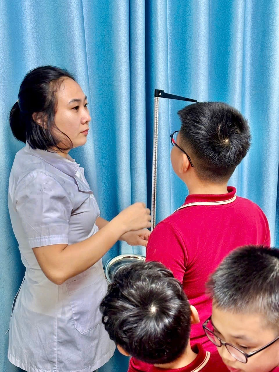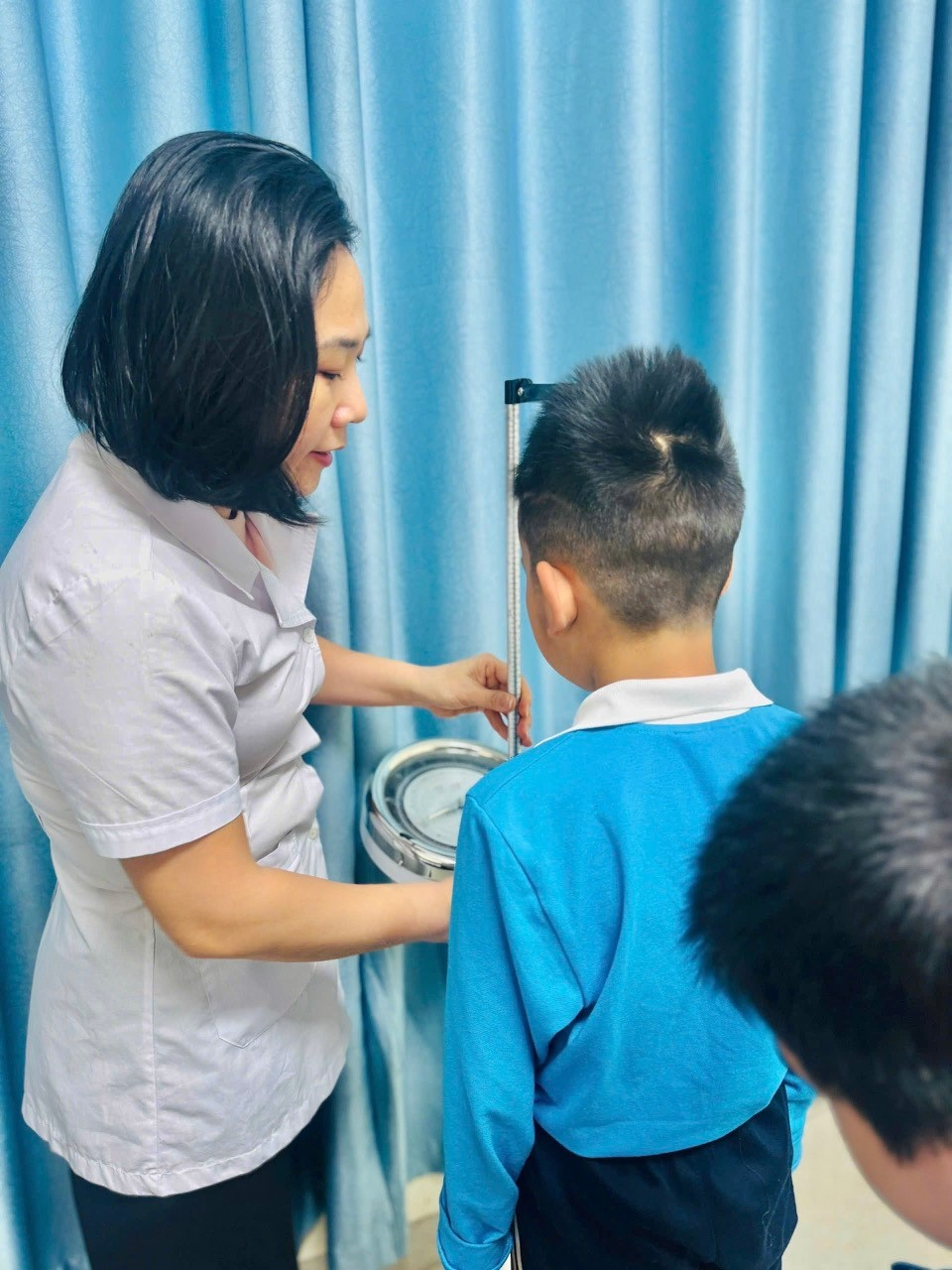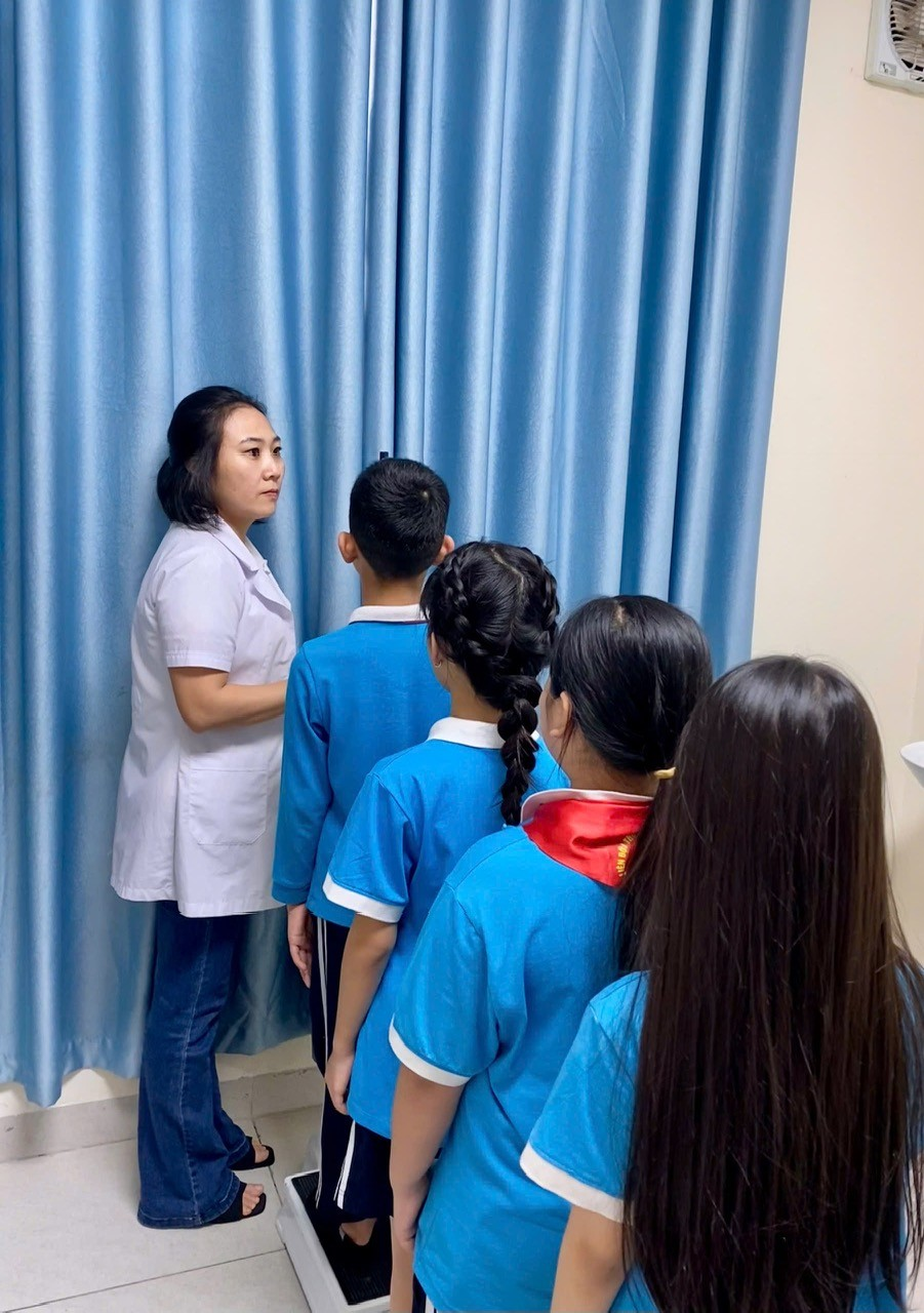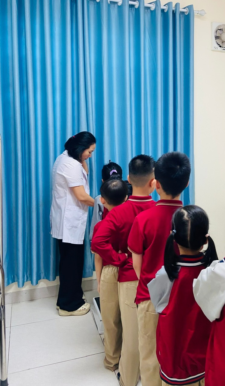 Thực hiện theo đúng kế hoạch năm học 2025-2026, nhân viên y tế nhà trường đã thực hiện đo cân nặng, chều cao cho học sinh vào cuối năm học, nhằm theo dõi sự phát triển của mỗi học sinh. Từ đó nhà trường phối hợp với gia đình để có những biện pháp kịp thời đối với những trường hợp trẻ thừa cân, béo phì suy dinh dưỡng. Dưới đây là một số hình ảnh nhân viên Y tế cân đo sức khỏe cho học sinh cuối năm học 2025-2026.